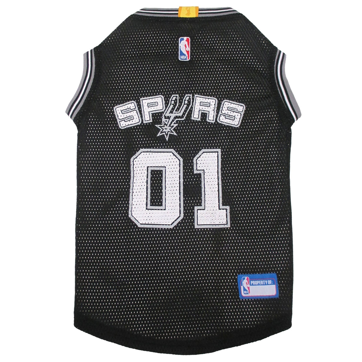 Get your dog ready for game day with this high-end NBA licensed pet jersey!!!This pet mesh jersey is designed to get you & your pet in the right spirit for game-day.Designed using wrinkle free poly-cotton material yet durable & soft to ensure comfort!Your pet will become a #1 fan with this officially licensed basketball Jersey.The OFFICIALLY LICENSED NBA DOG & CAT JERSEYIt has a team city, logo, team logotype and number on the back, Looks just like the real Jersey of your favorite player!The poly-mesh body creates a TAILORED FIT, while mesh panels provide ultimate comfort.Score a touchdown with this authentic NCAA PET JERSEY so your entire family is ready for game day!Get ready for some BASKETBALL with a jersey that includes TEAM NAME, LOGO and NUMBERS.The back of the jersey features a woven jock tag, with an area for personalization.A perfect and SUPER CUTE PET OUTFIT for all sports & game fans! - Great as a gift to your loved ones too!Whether you are looking for an apparel for your dog or cat, or just wanna show off your favorite school, this CUTEST DOG JERSEY will surely do the tricks!Your pet will feel proud wearing this decorative dress shirt, & you: get ready to receive many compliments!Love to match??While you buy this coolest JERSEY for your pet, why not buy our matching PETS FIRST NBA PET GEAR? NBA Dog Collars - Comes in 3 sizes in a beautiful collegiate team design. NBA Dog Hoodie T-Shirts - Comes in 4 sizes with a gorgeous team Logo & design. NBA Dog Reversible BANDANAS - Comes in 2 sizes, has a HOME & AWAY design! - My favorite! NBA Dog Leashes - Comes in 3 sizes with a matching team logo design. NBA Dog Toy or Cat Toy. - Too many Pets First NBA Pet Toys to list here!Buy the whole NBA Pet Collection & you are sure to be READY for ANOTHER GREAT WIN!!!* Don't forget to check out our Premium Training Pads, AKA the BEST Puppy Pads sold on Amazon!SIZING:This DOG JERSEY is available in 6 SIZES. Choose from; X-Small, Small, Medium, Large, X-Large and XX-Large.To choose the correct size: Measure your pet from the nape of the neck to the base of the tail and follow the illustrated size chart located under the item's picture!Choose your size and ADD TO CART Now before we run out of stock again!!!Our LICENSED PET BANDANAS comes in most NBA TEAMS:Atlanta Hawks, Boston Celtics, Brooklyn Nets, Charlotte Hornets, Chicago Bulls, Cleveland Cavaliers, Dallas Mavericks, Denver Nuggets, Detroit Pistons, Golden State Warriors, Houston Rockets, Indiana Pacers, LA Clippers, Los Angeles Lakers, Memphis Grizzlies, Miami Heat, Milwaukee Bucks, Minnesota Timberwolves, New Orleans Pelicans, New York Knicks, Oklahoma City Thunder, Orlando Magic, Philadelphia 76ers, Phoenix Suns, Portland Trail Blazers, Sacramento Kings, San Antonio Spurts, Toronto Raptors, Utah Jazz.PETS FIRST:Pets First company has established itself as the largest sports-licensed pet product company in the country.Pets First has gained its reputation in providing every pet owner with premium licensed pet products; from unique and colorful apparel items to fun and playful toys and accessories.Working with the latest technology, our creative designers choose from the highest quality materials to provide durable, unique and innovative pet merchandise.Our factories follow the highest standards of safety guidelines to ensure your pet's security, while providing a long lasting product.Licenses:Pets First has secured licenses with Major League Baseball (MLB), Major League Baseball Players Association (MLBPA), the National Football League (NFL), National Football League Players Association (NFLPA), National Hockey League (NHL), National Basketball Association (NBA), Major League Soccer (MLS) (Real Madrid C.F. Soccer club Real Madrid Club de Fútbol), LAURDIY, REALTREE & over 50 of the top colleges in the country (NCAA).>>> Always make sure to purchase from an approved seller such as Amazon to avoid buying counterfeit products! <<