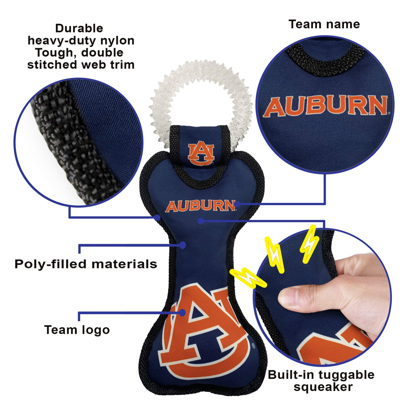 Pets First Ncaa Auburn Tigers Dental Dog Tug Toy With Squeaker. Tough Pet Toy For Healthy Fun, Teething & Cleaning Pets Teeth &