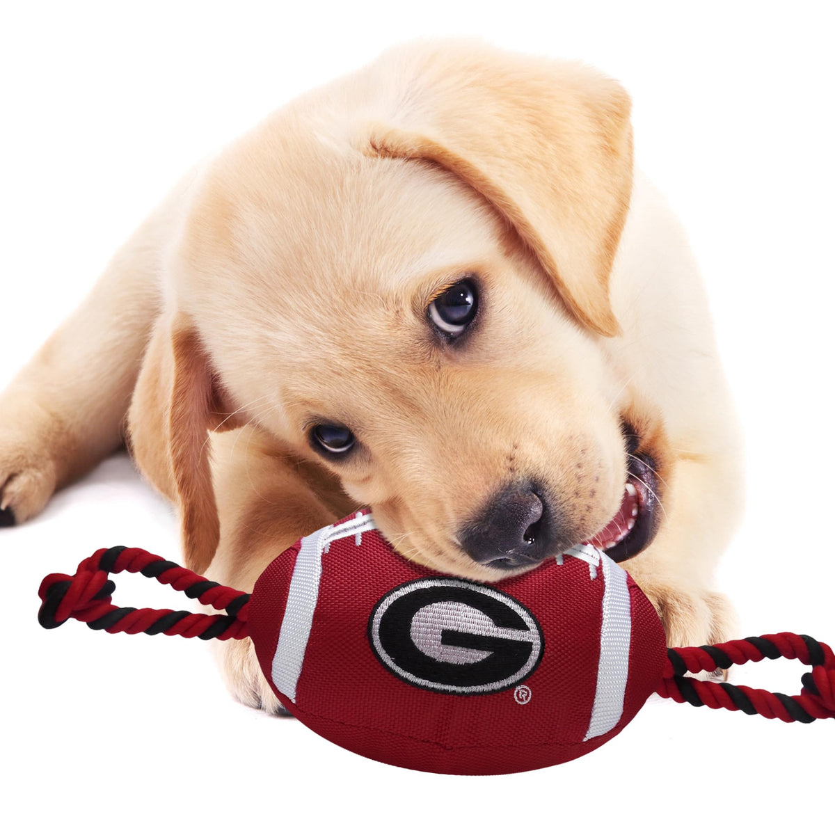 The Best FOOTBALL Pet Toy on Amazon:This Cool Pet Toy isofficially licensed by the NCAA and the College.This pet toy features bright team logos and colors of your favorite football team.Two ropes on both sides make for an easy game of tug, while the built in squeaker keeps your dogs entertained and enthused about this football toy!The #1 Tough dog toy on amazon.Machine Washable.Specially designed with you and your pet mind:Give your pet some team spirit with this NCAA nylon football toy.This dog toy in the shape of a FOOTBALL is just right for you!This pets first nylon football toy is designed with an embroidered team to show off his team pride.Perfect for playing fetch and general fun with your furry best friend.Great for strong chewers and provides hours of play and exercise.The #1 Smart Toy, Simple and straightforward solution to cure boredom.Sizing & Use:This dog toy is approximately 17 inches long, 4 inches thick, and 4 inches wide.Works well for any size of pets, Small Dogs, Large Dogs, Small Cats, Large Cats.It is intended for use as a fetch, tug, or toss toy or as a chew toy.Durability:It is unique non-toxic materials.Made from heavy duty & durable canvas outer, poly filled & held together with tough nylon web binding.Long lasting heavy duty rope for bigger dogs.When paired with durability, these products are perfect for the modern dog and pet owner.This Pet Toy comes in most NCAA TEAMS:Alabama Crimson Tide, Arkansas Razorbacks, Auburn Tiger, Clemson Tigers, Florida Gators, Florida State Seminoles, Georgia Bulldogs, Illinois Fighting Illini, LSU Tigers, Louisville Cardinals, Miami Hurricanes, Michigan State Spartans, Michigan Wolverines, Nebraska Cornhuskers, Ohio State Buckeyes, Oklahoma Sooners, Oklahoma State Cowboys, Oregon Ducks, Penn State Nittany Lions, South Carolina Gamecocks, Tennessee Volunteers, Texas A&M Aggies, Texas Longhorns, Virginia Tech Hokies, Wisconsin Badgers.*Choose your team and Add to Cart Now!Contains:Packaging: 1 - NCAA Nylon Football* Don't forget to check out our Premium Training Pads, AKA the BEST Puppy Pads sold on Amazon!PETS FIRST:Pets First company has established itself as the largest sports-licensed pet product company in the country.Pets First has gained its reputation in providing every pet owner with premium licensed pet products; from unique and colorful apparel items to fun and playful toys and accessories.Working with the latest technology, our creative designers choose from the highest quality materials to provide durable, unique and innovative pet merchandise.Our factories follow the highest standards of safety guidelines to ensure your pet's security while providing a long lasting product.Licenses:Pets First has secured licenses with Major League Baseball (MLB), Major League Baseball Players Association (MLBPA), the National Football League (NFL), National Football League Players Association (NFLPA), National Hockey League (NHL), National Basketball Association (NBA), Major League Soccer (MLS) (Real Madrid C.F. Soccer club Real Madrid Club de F tbol),LAURDIY, REALTREE & over 50 of the top colleges in the country (NCAA).>>> Always make sure to purchase from an approved seller such as Amazon to avoid buying counterfeit products!When you are a Pet Owner, you are part of the Pets First family!At Pets First we always have you covered!