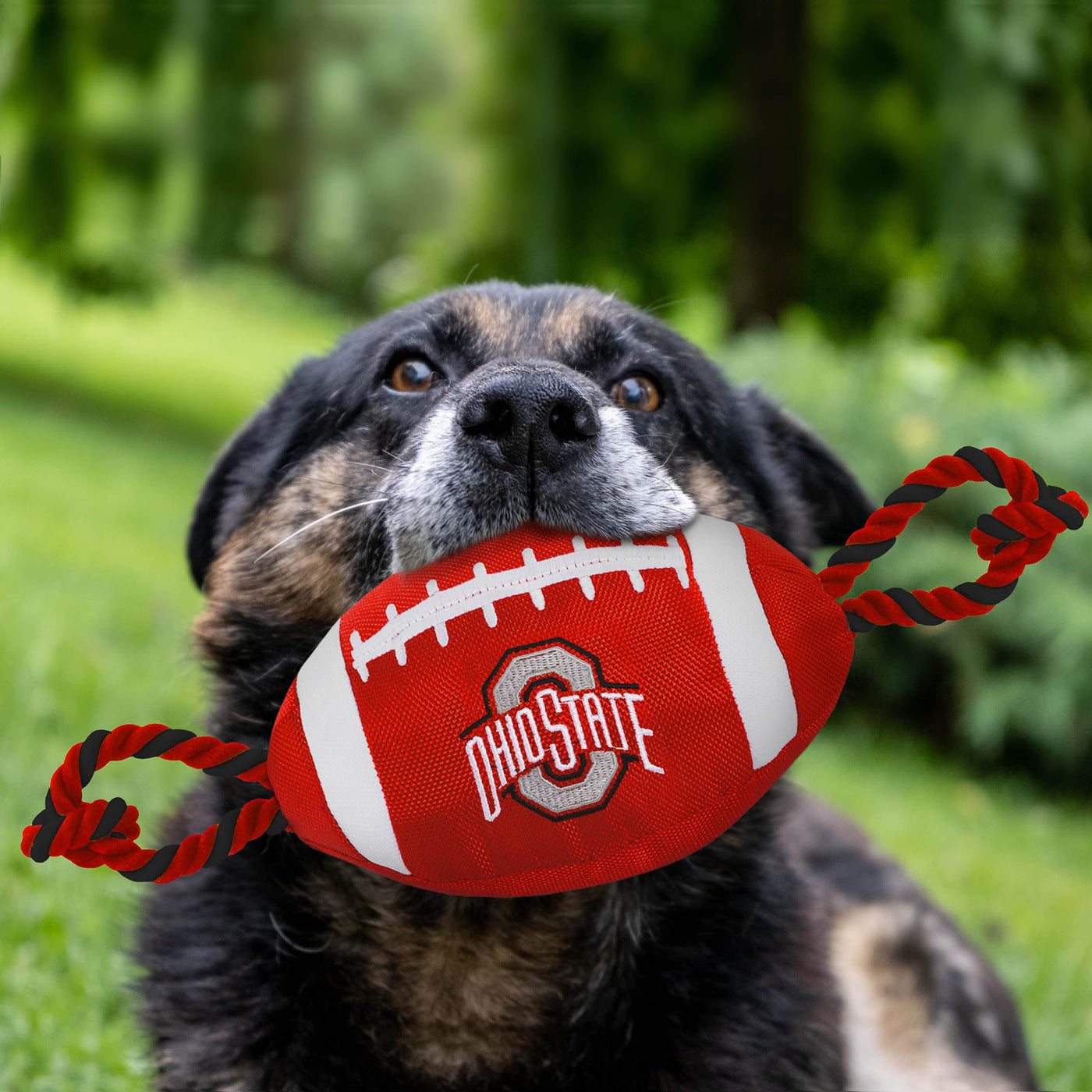 Pets First NCAA Ohio State Buckeyes Football Dog Toy, Tough Quality Nylon Materials, Strong Pull Ropes, Inner Squeaker, Collegia