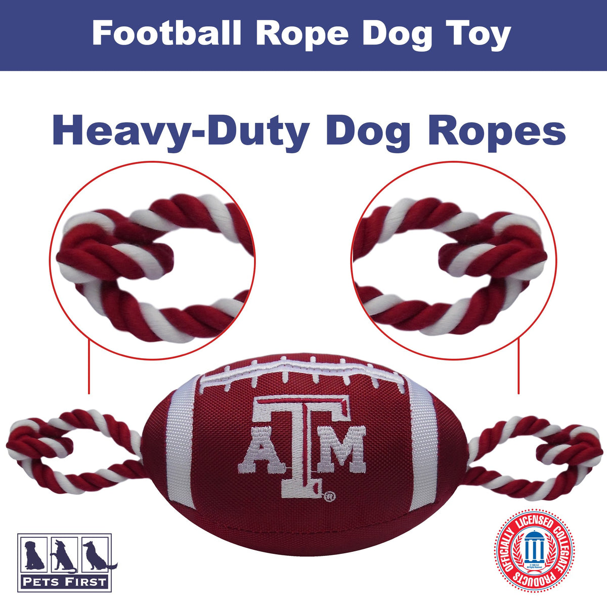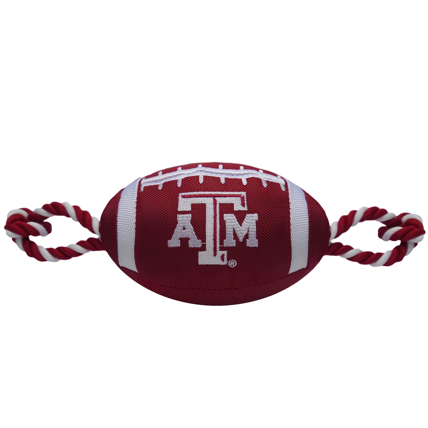 Pets First Ncaa Texas A&M Aggies Football Dog Toy, Tough Quality Nylon Materials, Strong Pull Ropes, Inner Squeaker, Collegiate Team Color