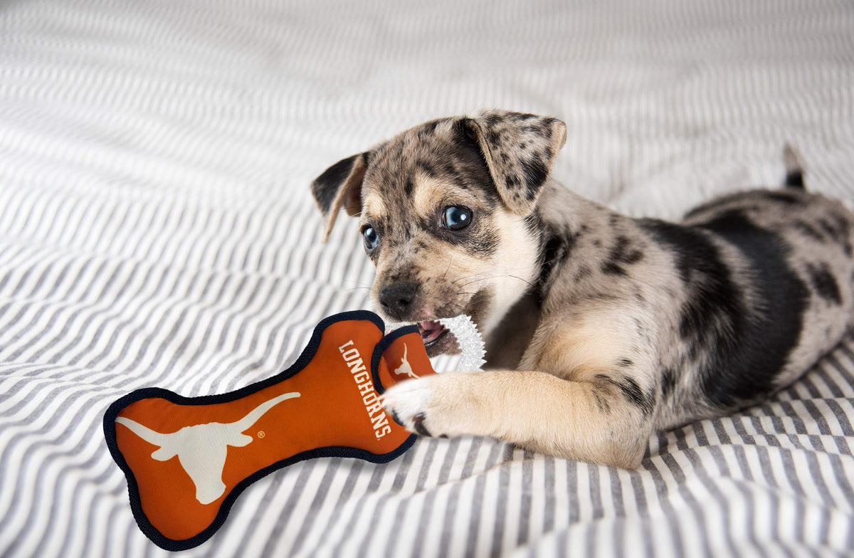 >Are You Looking For A New Toy To Play With Your Dog? Are You A Football/Basketball Fan? Want To Help Your Dog Keep Clean Teeth And Gums? This Is The Dog Toy You Need! Show Support For Your Team While Having Fun And Cleaning Your Dogs Teeth And Gums! Your Dog Wants To Have Fun And Be Healthy! You Can Now Buy This New Ncaa Dog Toy That Will Provide Hours Of Fun For You; Your Pet, While At The Same Time You Can Show Off Your Team Spirit And Help Them Be Healthy! Durability: This Ncaa Dental Toy Is Made Of Durable; Heavy-Duty Nylon; Poly-Filled Materials With A Tough Double Stitched Web Trim To Ensure Safety; Durability. It Also Contains A Spike Shaped Rubber Dental Ring For Your Dog Which Is Soft Enough For Teeth And Gums While Still Being Strong For Tough Play. Features: Has A Built-In Tuggable Squeaker For Dogs That Love To Play And Make Noise. This Bone Dog Toy Features Your Favorite School Team Name/ Logo In Vibrant Team Colors! Perfect For All Ncaa Collegiate Sports Fans! Great For Strong Chewers And Provides Hours Of Fun & Teeth Cleaning. You Can Stop Searching! This Is The #1 Dog Toy! Also Healthy For Your Pup! Sizing/Use: This Sport Themed Pet Toy Is Approximately 14 Inches Long And 5 Inches Wide. It Is Intended For Use As A Fetch, Tug, Or Toss Toy Or As A Chew Toy. As With Any Toy, Do Not Leave Your Pet, Cat, Dog Alone And Unsupervised. While No Dog Toy Is Ever Guaranteed, This Tough Pet Toy Has Been Developed To Provide Plenty Of Playtime When Used As Instructed. Teams: This Healthy Pet Toy Comes In Most College Teams. Need More Pet Gear? Love To Match? While You Buy The Best; Coolest Sports Toy For Your Pet, Why Not Buy Our Matching Pets First Ncaa Pet Gear? Ncaa Leashes Ncaa Jerseys Ncaa Dog Toys Ncaa Collars Ncaa Tee Shirts Ncaa Bandanas, Buy The Whole Ncaa Pet Collection; You Are Sure To Be Ready For Another Great Win!