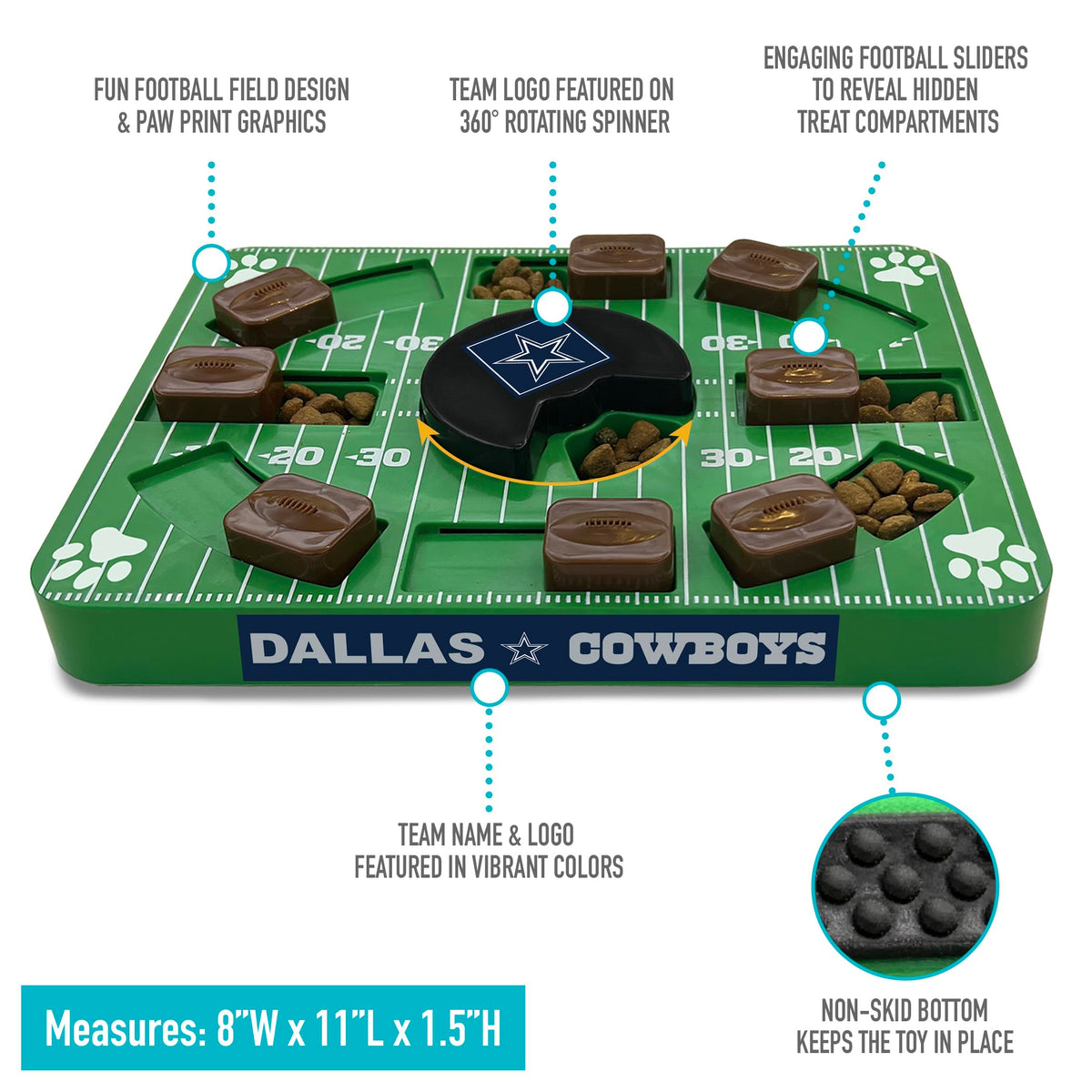 Introducing The Pets First Nfl Puzzle Treat Dog Toy - The Ultimate Interactive Dog Treat Toy Designed To Exercise Your Pet'S Mind And Provide Hours Of Entertainment. This Dog Puzzle Is Perfect For Reducing Destructive Behavior By Engaging Your Furry Friend'S Natural Hunting Instincts And Providing A Stimulating Challenge.This Puzzle Treat Toy Features Multiple Hiding Places For Your Dog'S Favorite Treats. With Its Various Compartments And Hidden Slots, Your Pet Will Have A Blast Searching And Sniffing Out The Hidden Treasures. This Not Only Provides Mental Stimulation But Also Encourages Your Dog'S Instinctive Hunting Behavior, Keeping Them Engaged And Satisfied.By Engaging Your Dog'S Mind And Senses, This Interactive Toy Helps Prevent Boredom And The Resulting Destructive Behaviors Often Associated With It. Your Pet Will Be Focused And Occupied, Channeling Their Energy Into Solving The Puzzle And Retrieving The Tasty Rewards.The Pets First Nfl Puzzle Treat Dog Toy Is Designed With Your Pet'S Safety And Durability In Mind. Made From High-Quality Materials, It Can Withstand Rigorous Play And Chewing, Ensuring Long-Lasting Entertainment For Your Furry Friend.Choose From A Variety Of Nfl Team Logos And Vibrant Colors To Showcase Your Pet'S Team Spirit While They Enjoy Playtime. This Puzzle Treat Toy Is Not Only Entertaining But Also A Great Way To Bond With Your Pet And Share Some Joyous Moments And Team Spirit Together.Exercise Your Pet'S Mind, Reduce Destructive Behavior, And Encourage Their Natural Hunting Instincts With The Pets First Nfl Puzzle Treat Dog Toy. With Its Many Hiding Places For Treats, This Interactive Dog Toy Is Sure To Become Your Pet'S Favorite Go-To For Endless Fun And Delicious Rewards.