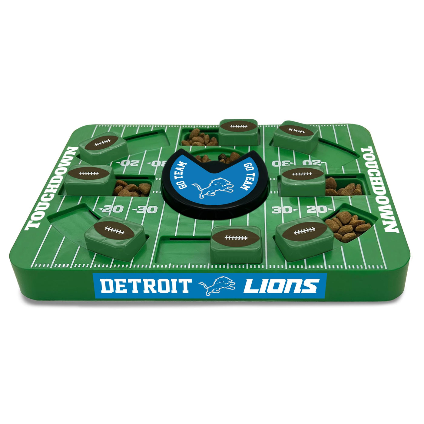 Introducing The New Pets First Nfl Large Puzzle Treat Dog Toy - The Ultimate Interactive Dog Treat Toy Designed To Exercise Your Pet'S Mind And Provide Hours Of Entertainment. This Dog Puzzle Is Perfect For Reducing Destructive Behavior By Engaging Your Furry Friend'S Natural Hunting Instincts And Providing A Stimulating Challenge.This New And Improved Large Puzzle Treat Toy Features Multiple Hiding Places For Your Dog'S Favorite Treats. With Its Various Compartments And Hidden Slots, Your Pet Will Have A Blast Searching And Sniffing Out The Hidden Treasures. It Sports A New Look And Design And Is Made In A Larger Size For All Dogs. This Not Only Provides Mental Stimulation But Also Encourages Your Dog'S Instinctive Hunting Behavior, Keeping Them Engaged And Satisfied.By Engaging Your Dog'S Mind And Senses, This Interactive Toy Helps Prevent Boredom And The Resulting Destructive Behaviors Often Associated With It. Your Pet Will Be Focused And Occupied, Channeling Their Energy Into Solving The Puzzle And Retrieving The Tasty Rewards.The Pets First Nfl Large Puzzle Treat Dog Toy Is Designed With Your Pet'S Safety And Durability In Mind. Made From High-Quality Materials, It Can Withstand Rigorous Play And Chewing, Ensuring Long-Lasting Entertainment For Your Furry Friend.Choose From A Variety Of Nfl Team Logos And Vibrant Colors To Showcase Your Pet'S Team Spirit While They Enjoy Playtime. This Puzzle Treat Toy Is Not Only Entertaining But Also A Great Way To Bond With Your Pet And Share Some Joyous Moments And Team Spirit Together.Exercise Your Pet'S Mind, Reduce Destructive Behavior, And Encourage Their Natural Hunting Instincts With The Pets First Nfl Puzzle Treat Dog Toy. With Its Many Hiding Places For Treats, This Interactive Dog Toy Is Sure To Become Your Pet'S Favorite Go-To For Endless Fun And Delicious Rewards.Choose Your Team And Correct Size, And Add To Cart Now!* Don'T Forget To Check Out Our Premium Training Pads, Aka The Best Puppy Pads Sold On Amazon!Pets First:Pets First Company Has Established Itself As The Largest Sports-Licensed Pet Product Company In The Country.Pets First Has Gained Its Reputation In Providing Every Pet Owner With Premium Licensed Pet Products; From Unique And Colorful Apparel Items To Fun And Playful Toys And Accessories.Working With The Latest Technology, Our Creative Designers Choose From The Highest Quality Materials To Provide Durable, Unique And Innovative Pet Merchandise.Our Factories Follow The Highest Standards Of Safety Guidelines To Ensure Your Pet'S Security, While Providing A Long Lasting Product.Licenses:Pets First Has Secured Licenses With Major League Baseball (Mlb), Major League Baseball Players Association (Mlbpa), Football, Football Players, National Hockey League (Nhl), National Basketball Association (Nba), Major League Soccer (Mls) (Real Madrid C.F. Soccer Club Real Madrid Club De F Tbol), Laurdiy, Realtree & Over 50 Of The Top Colleges In The Country (Ncaa).When You Are A Pet Owner, You Are Part Of The Pets First Family! At Pets First We Always Have You Covered!