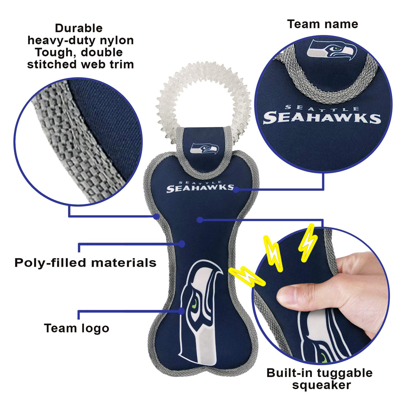 Pets First NFL Seattle Seahawks Dental Dog TUG Toy with Squeaker. Tough PET Toy for Healthy Fun, Teething & Cleaning Pet's Teeth