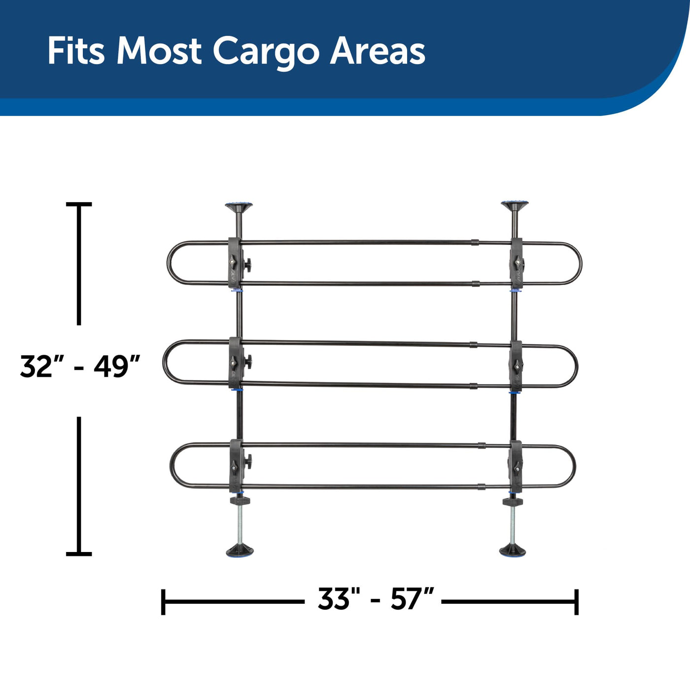 Enjoy road trips with your best friend while keeping your dog from inviting himself into the passenger seats with the PetSafe Happy Ride Metal Dog Barrier. The sturdy, metal frame is easy to setup and uses tension to stay in place in the cargo area of your car or SUV. The adjustable design of the barrier lets you fit it to your vehicle. The barrier does not block your visibility into the back of your car, allowing you to see your tail-wagging buddy on car rides. At the end of a fun-filled day, the dog barrier quickly disassembles and conveniently stores in the included storage pouch. PetSafe brand is here to help you and your pet live happy together.