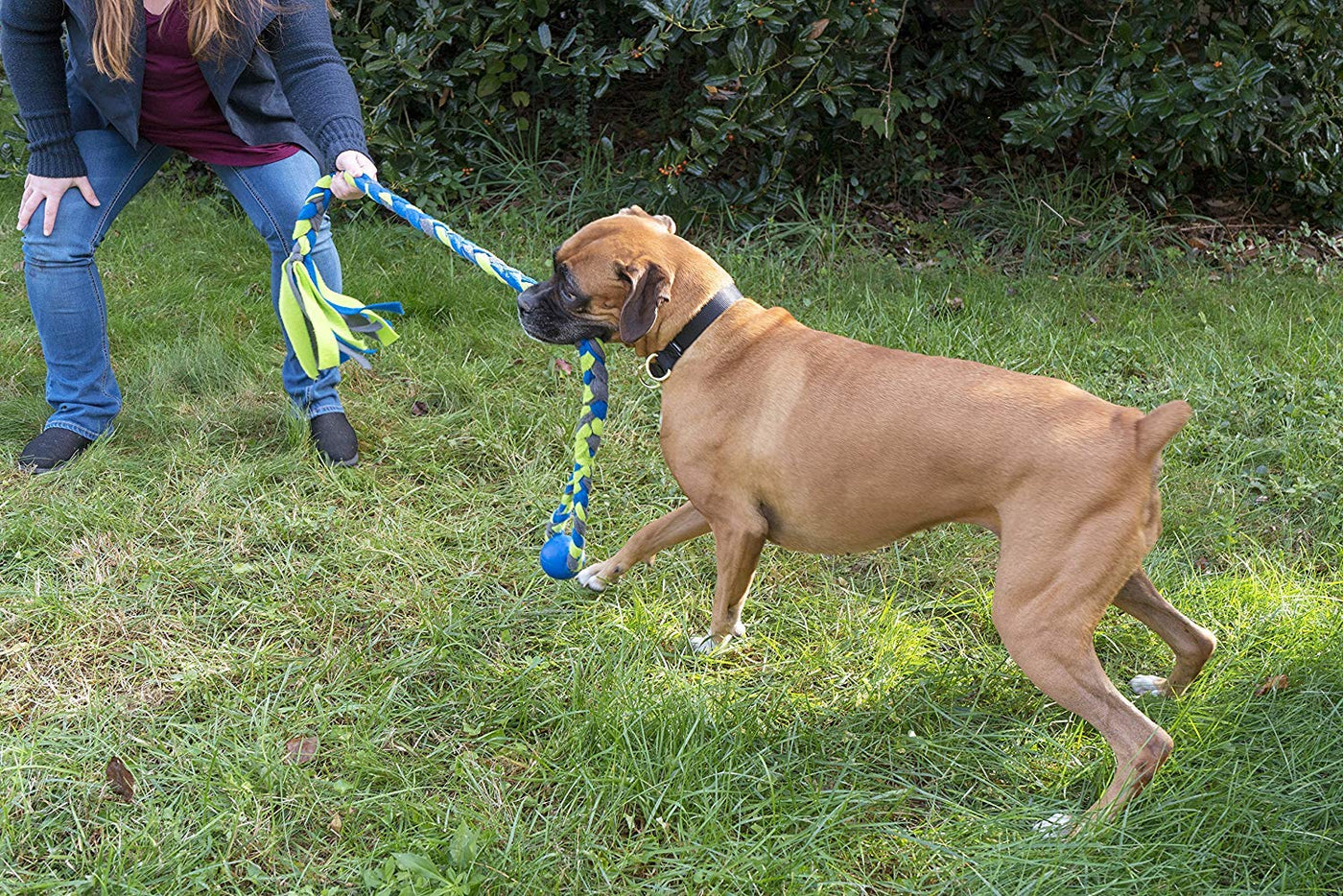 DURABLE: Durable rubber ball provides an additional tugging grip