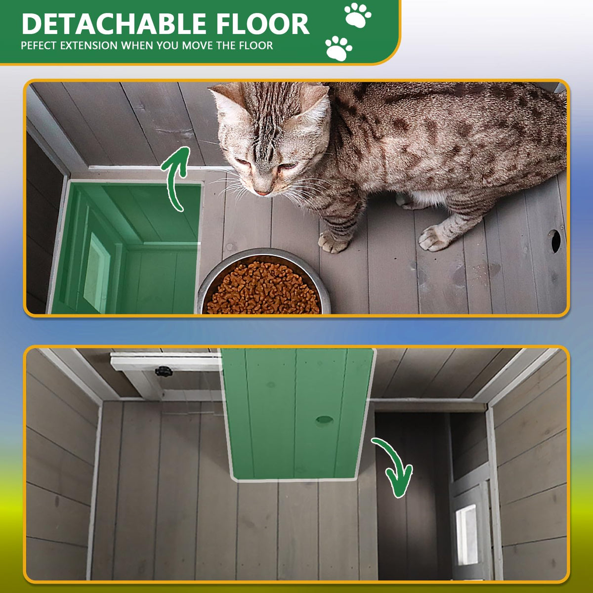 Petscosset Outdoor Cat House, Large Wooden Cat House Feral Cat Shelter House Outside With Balcony Weatherproof, Pull-Out Tray, Waterproof Roof, Platforms, Escape Door?2-Story Outdoor Cat Shelter?This 2-Story Cat Shelter Is An Ideal Playground And Resting Place For Your Feline Friends, Ensuring They Have A Comfortable And Enjoyable Outdoor Environment Year-Round. Offers Cats A Better View From A Higher Vantage Point. Suitable For Both Small And Large Cats To Play Together. And It Will Be Better To Protect The Solid Wood Materials Well When Heavey Rains By Covering Something Rainresistant.