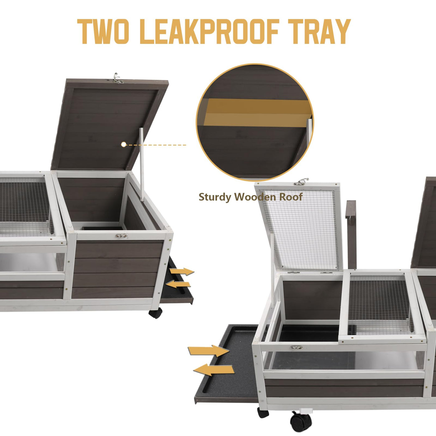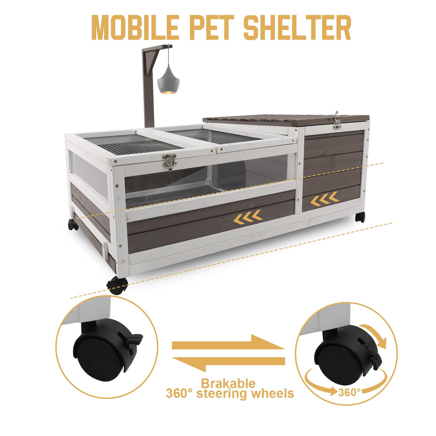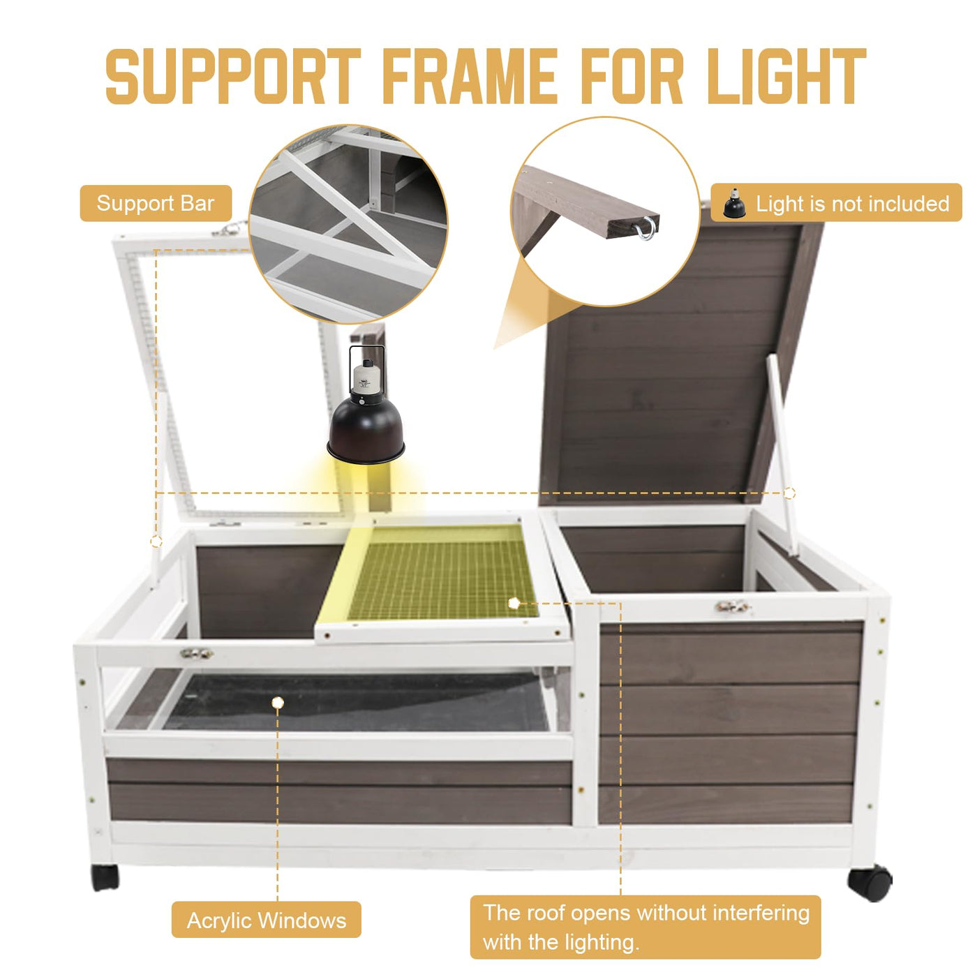 Petscosset Tortoise Habitat On Wheels, Large Wooden Tortoise House, Indoor Tortoise Enclosure, Outdoor Reptile Cage 39''L*23''W*