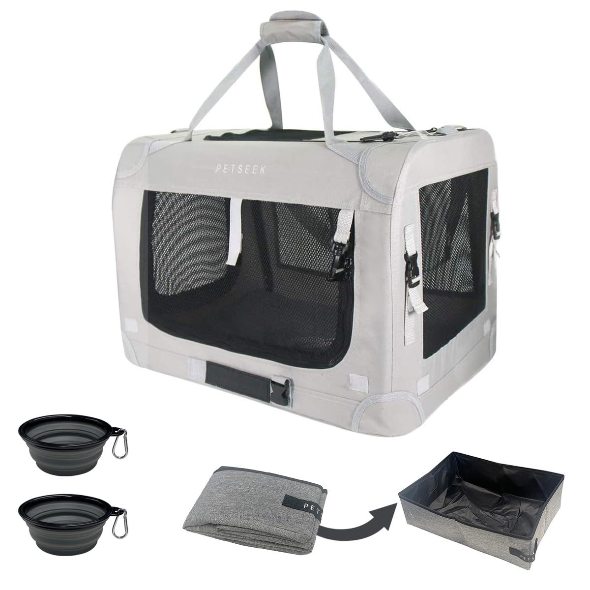 Petseek Extra Extra Large Cat Carrier Soft Sided, Portable Small Dog Carrier For 2 Cats, 24''X16.5''X16'' Car Travel Folding Com