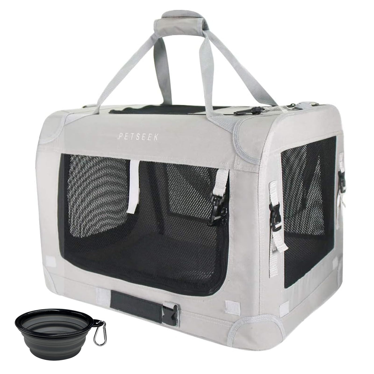 Petseek Extra Large Cat Carrier Soft Sided, Portable Small Dog Carrier For 2 Cats, 24''X16.5''X16'' Car Travel Folding Comfortab