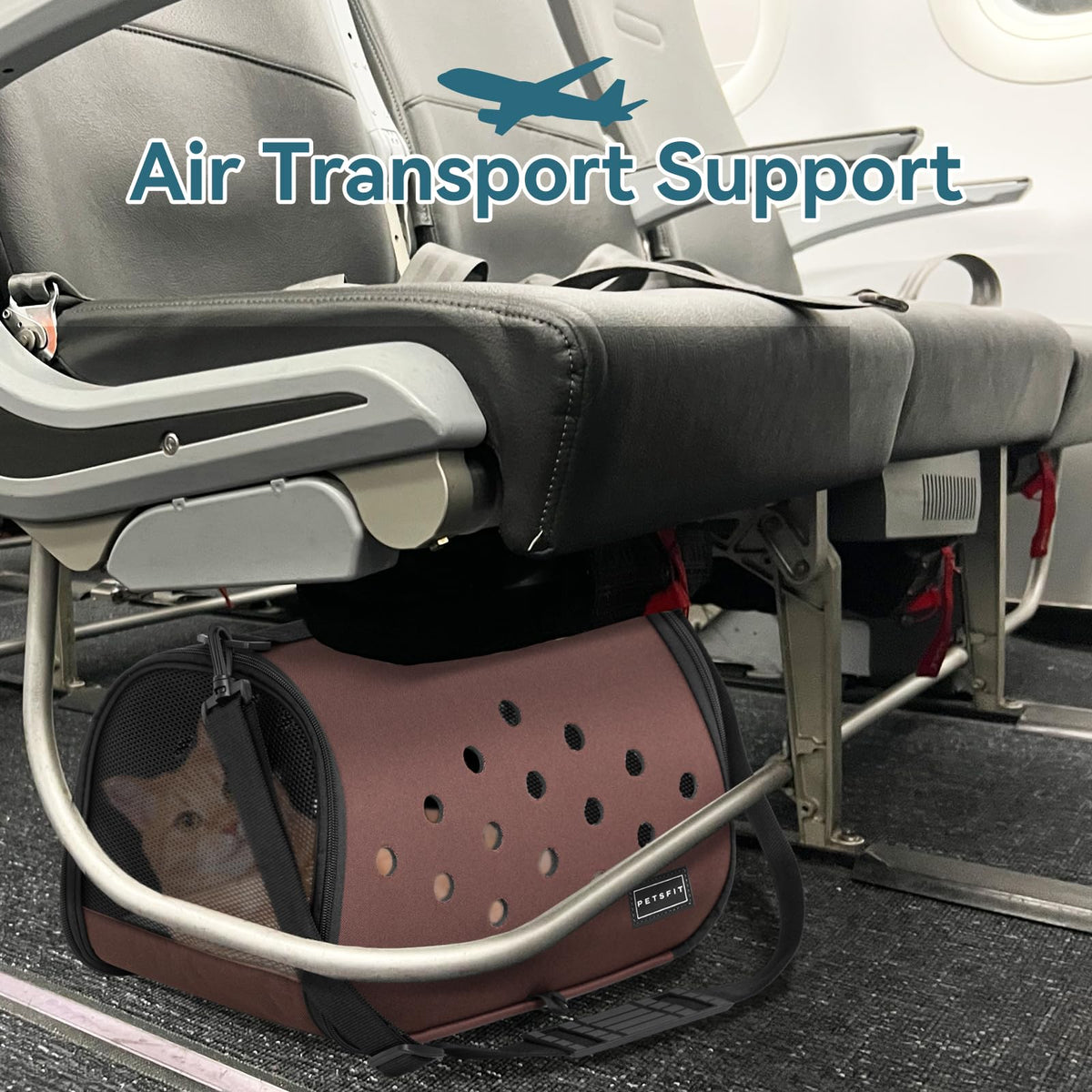 Q: How does the ventilation system work in this carrier?A: This carrier features 16 large ventilation holes at the front and back, along with two anti-bite mesh windows on the sides, ensuring optimal airflow and comfort for your pet during travel.