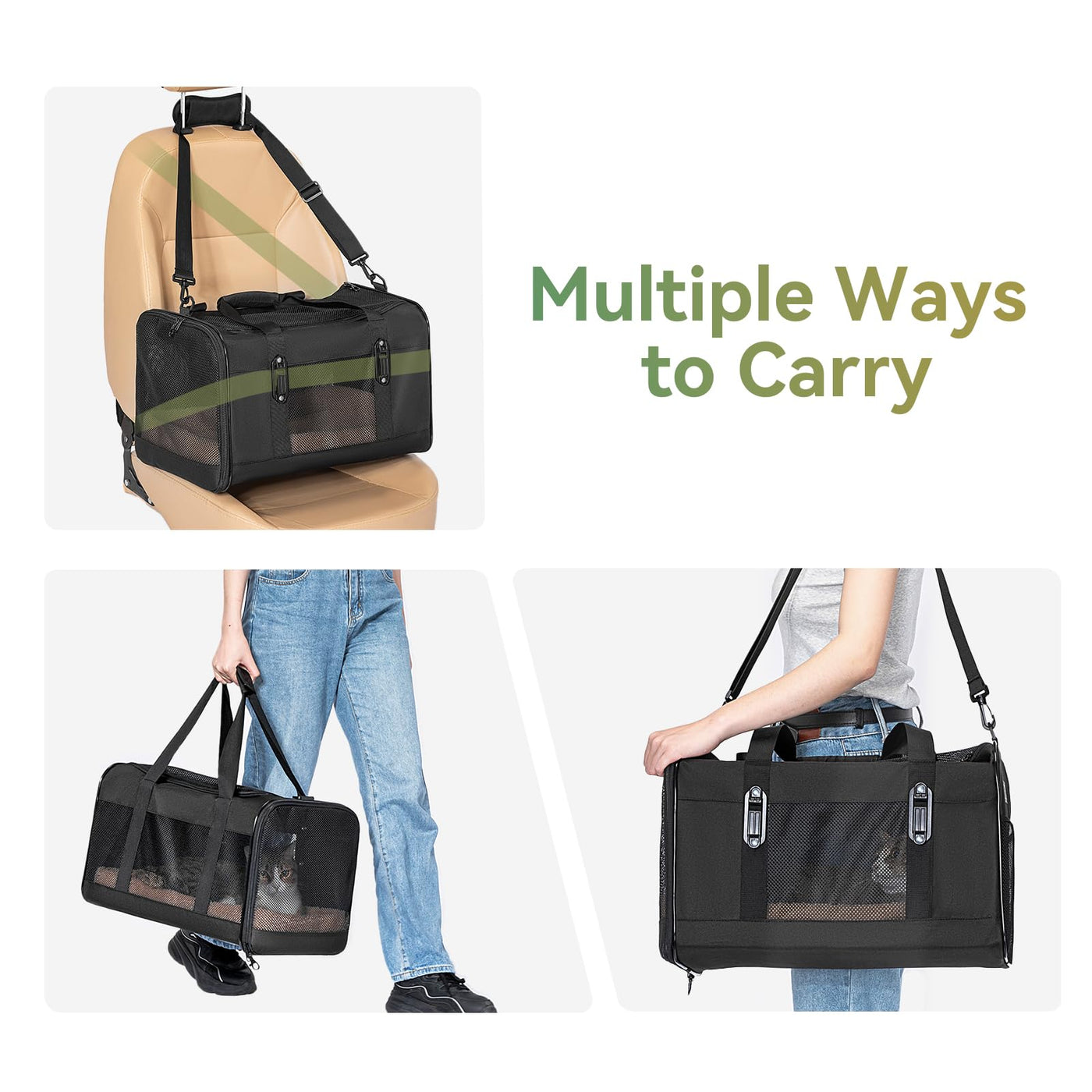 Petsfit 19X12X12 Pet Carrier For Large Cats (Up To 20 Lbs), Soft-Sided Small Dog Travel Carrier, Upgraded With Patented Buckle A