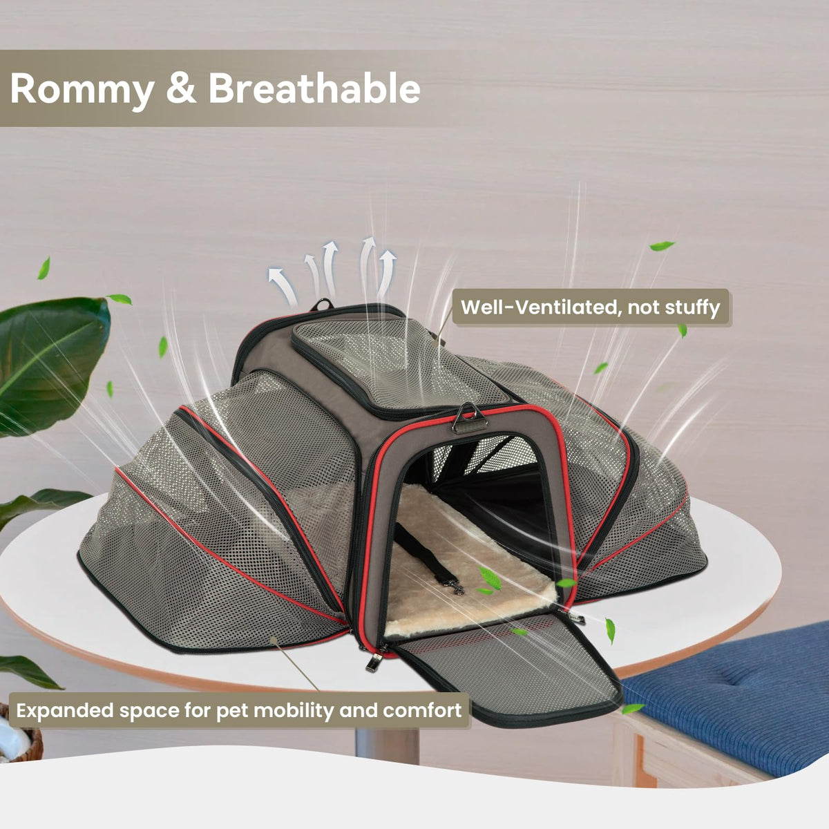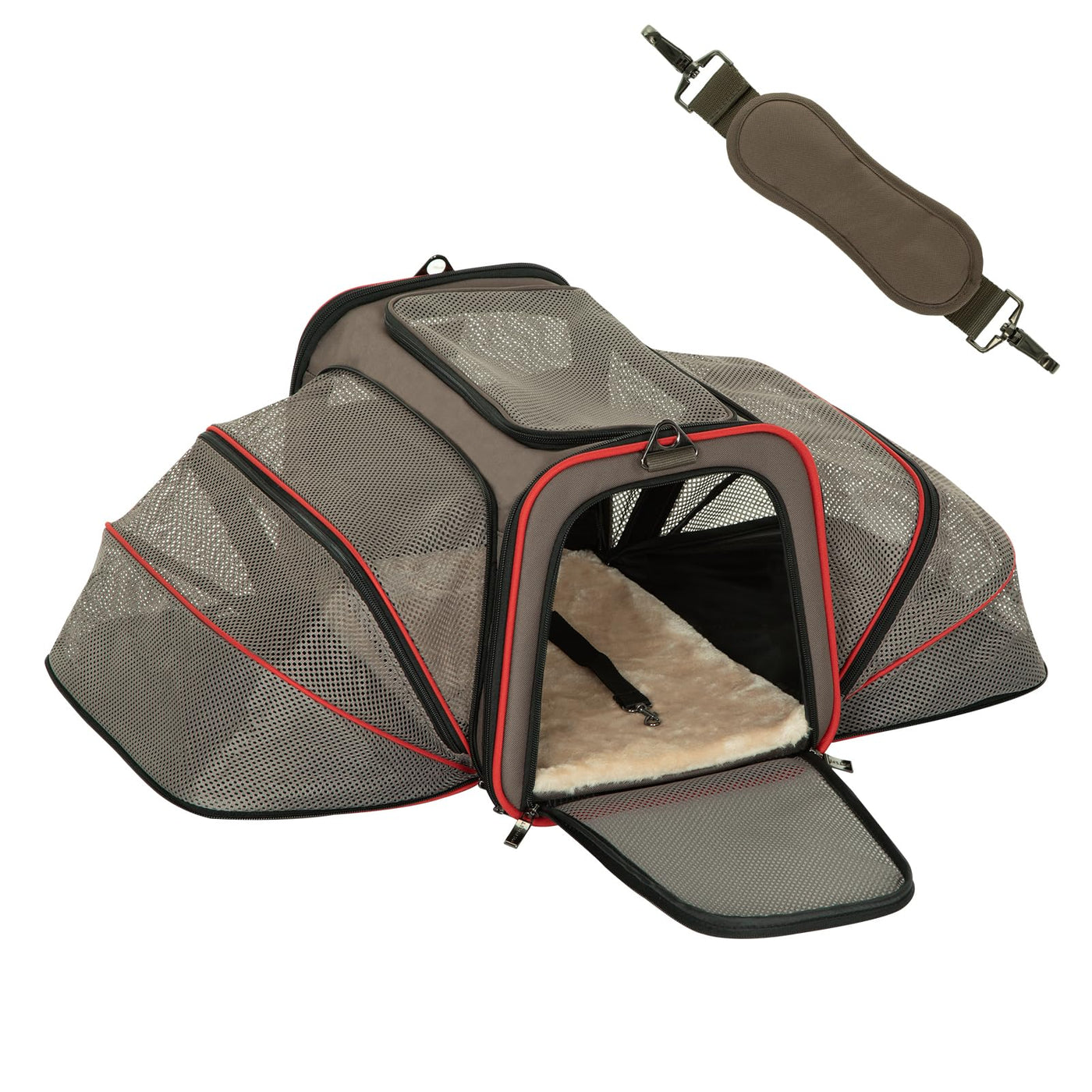 Petsfit 2 Side Expandable Pet Carrier Dog Carrier Cat Carrier For 2 Cats, 19' Lx 12' Wx 12' H, With Soft Cushion, Built-In Safety Rope, Pockets, Fit For Car Travel