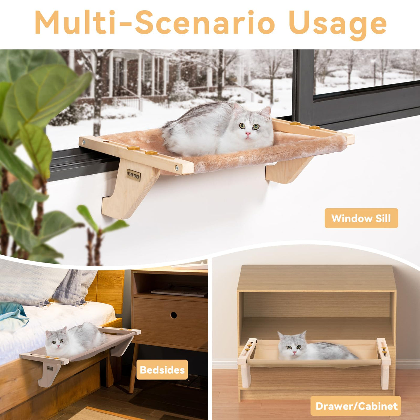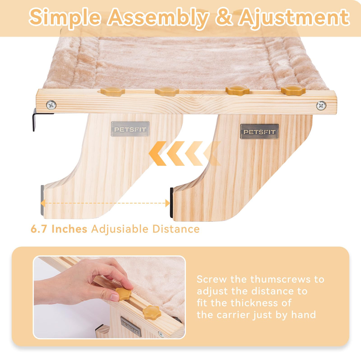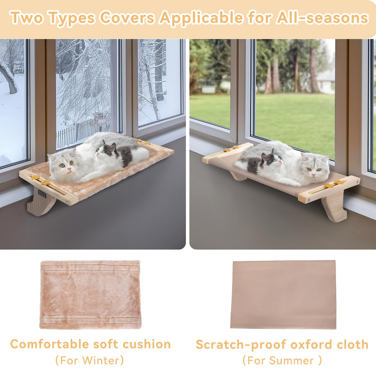 Petsfit Cat Window Perch, Hammock Window Seat With Solid Wood Support, Metal Frame & 2 Removable Pads, Easy To Adjust & Assemble