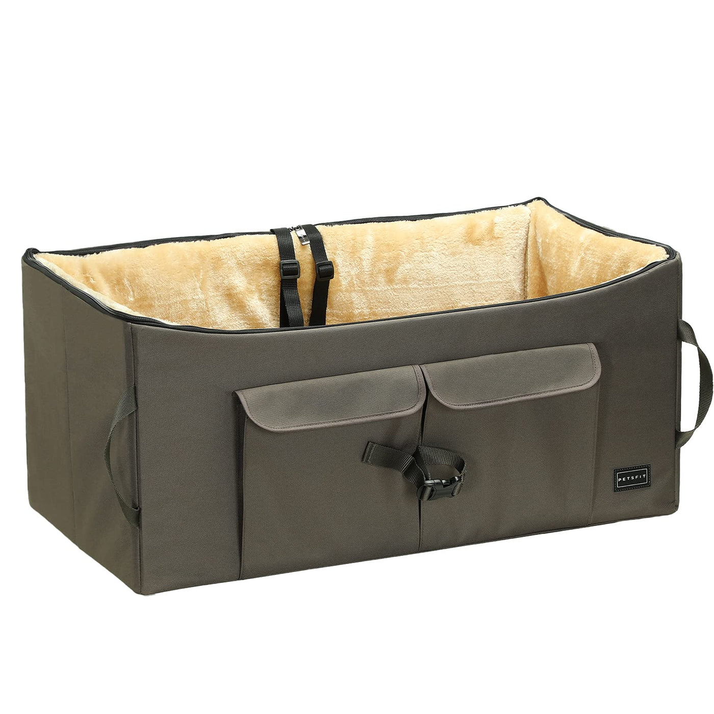 Large Size Design Petsfit Dog car Seat for Large Dogs up to 55lb or 2 Small Dogs Pet Travel Dog Booster Seat with 2 Safety Belt Washable Double-Sided cushion and Storage Pocket for Medium Dogs With Dimensions of 295 L x 157W x 138