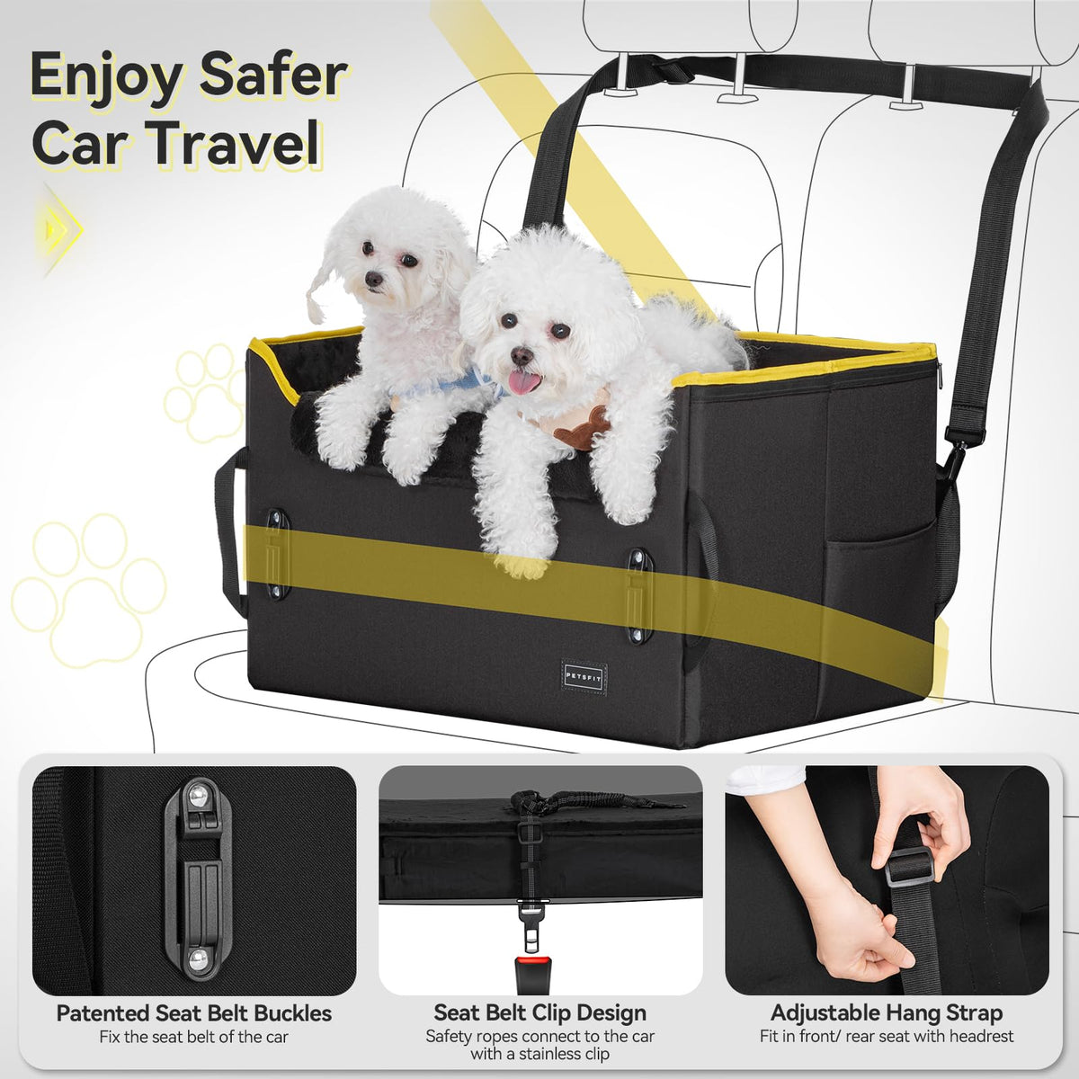 PETSFIT Dog Car Booster Seat Medium Dog Car Seat with 2 Clip-On Safety Leashes Patented Buckles Dog Booster Seat with Big Pockets for Pets Under 45Lbs (Medium Black)