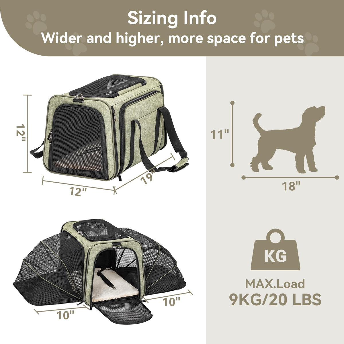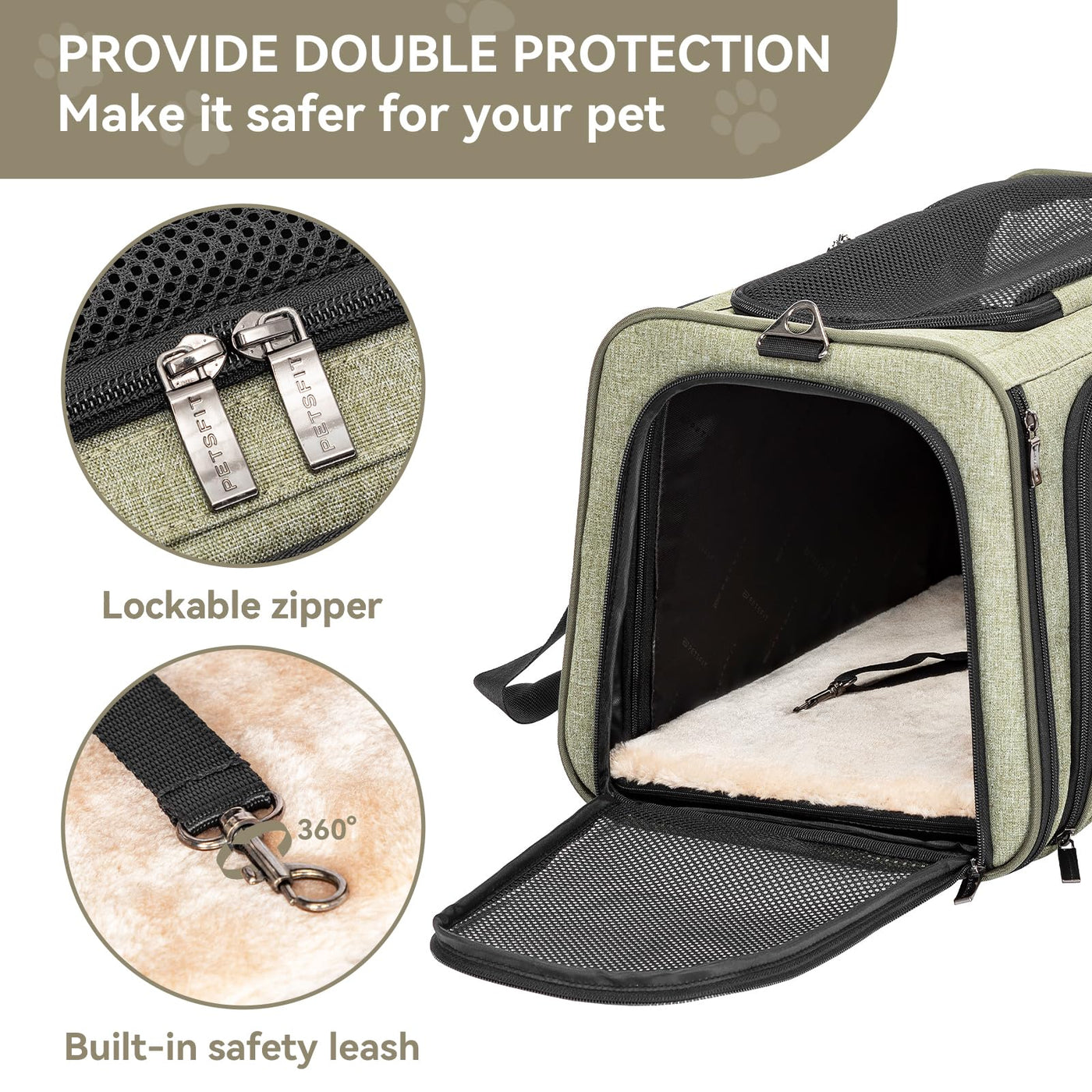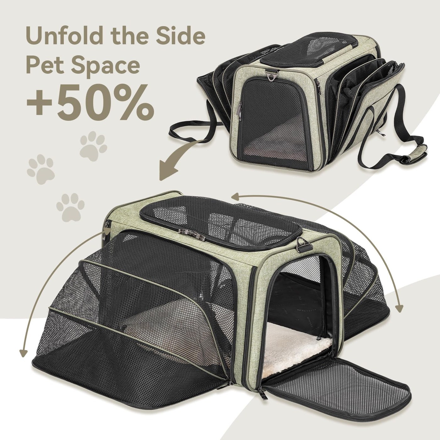 Petsfit Expandable Cat Carrier Dog Carrier, Soft-Sided Portable Pet Travel Carrier, Removable Soft Plush Mat And Pockets, Lockin