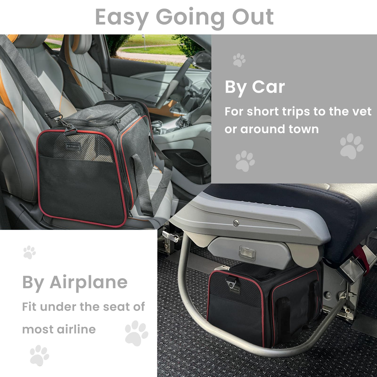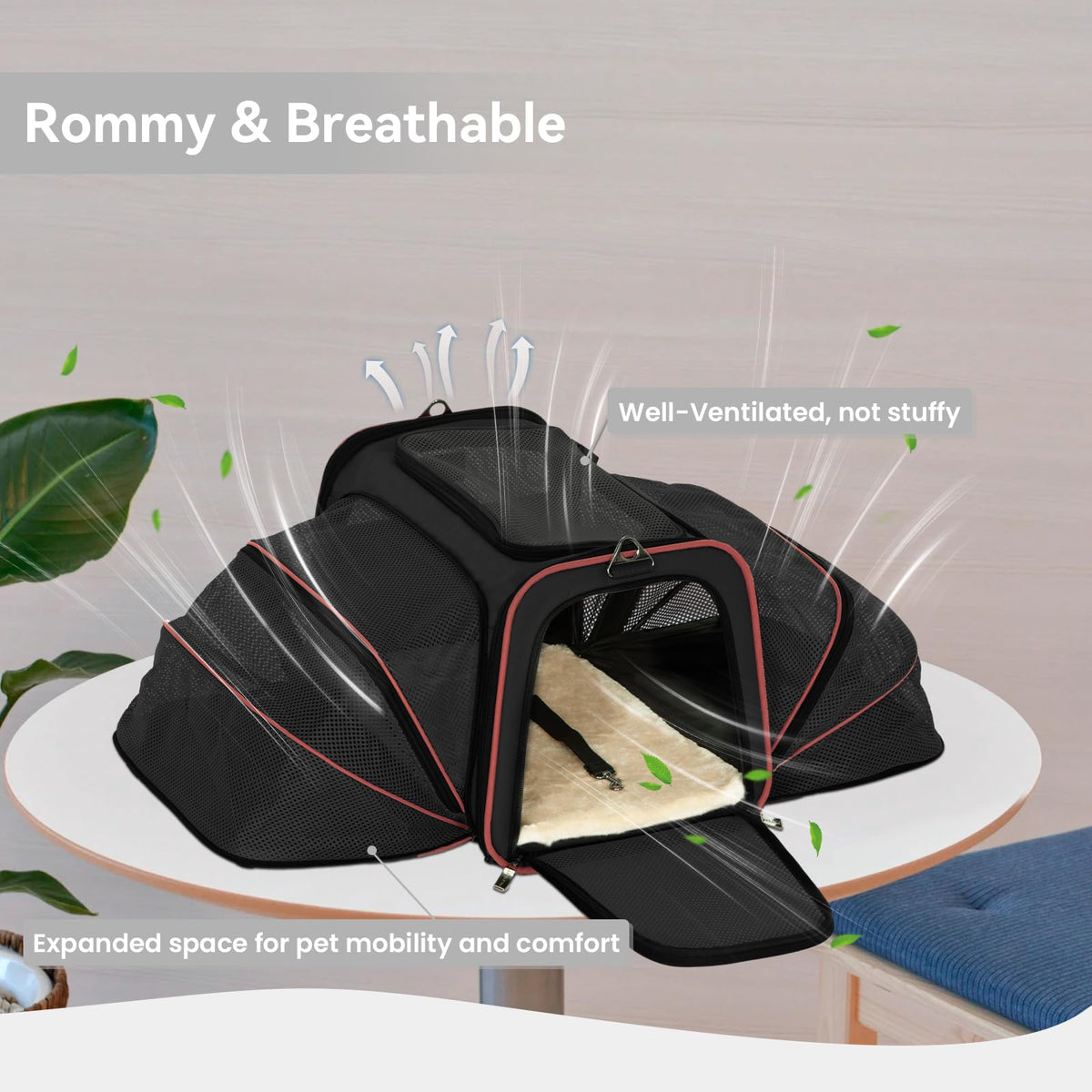 Basic Informationfabric: 600D X 600D Oxford Cloth Lining,230D Polyester Mesh,Hexagonal Zipper,Metal Slider And Nylon Teeth And Durability Is 10000 Timesnote:All Material Is No Harm To Pets.Designs And Functions:1. Several Mesh Designs Makes It Good Ventilation.2. Expandable Area Let Pet Have More Space To Move And Increase Air Circulation.3. Wire Frame In Both Sides Support The Carrier To Be More Stereo.4. Nylon Woven Tape Hand And Shoulder Strap Is Strong To Carry.5. Two Zipper Doors Are Easy To Access.6. Soft Fleece Mat Is Comfortable For Pets.7. Side-Pockets Can Store Small Goods.Tips On Airline Approved Carrier:1.Check Seat Guru For The Seat You Maybe Be Sitting In. If You Have An Aisle Seat, There Will Not Be Enough Room To Expand The Sides; You Must Be Sitting At Either The Center Or Window Seat In Order To Expand It. 2.As To The L Size, It'S Best To Check With The Corresponding Customer Service For Up To Date Info On The Particular Flight You'Re Taking.There'S Also A Great Blog Called Dog Jaunt That Collects Info On The Various Planes And Companies. Our Carrier Is Flexible Enough To Compress 1 Or 2 Inches To Fit Under An Airplane Seat. 3.As To The L Size Carrier,All You Need To Do Is Remove Two Fiberglass Rods Running Along The Top That Provides Stability For The Length. There Are Slots Inside That Let You Remove These Easily. You Can Always Put Them Back Later, But If You Don'T Take Them Out, You Will Never Be Able To Push This Under The Seat. Warranty: 1. Petsfit Adhere To Amazon Return Policy. 2. Within 30 Days,Any Quality Problems, We Will Take Full Responsibility.3.Any Damages Happened During Shipping Period, We Will Burden The Cost. Attention: Please Kindly Check With Airline Company Before You Travel To Avoid Fly Troubles.