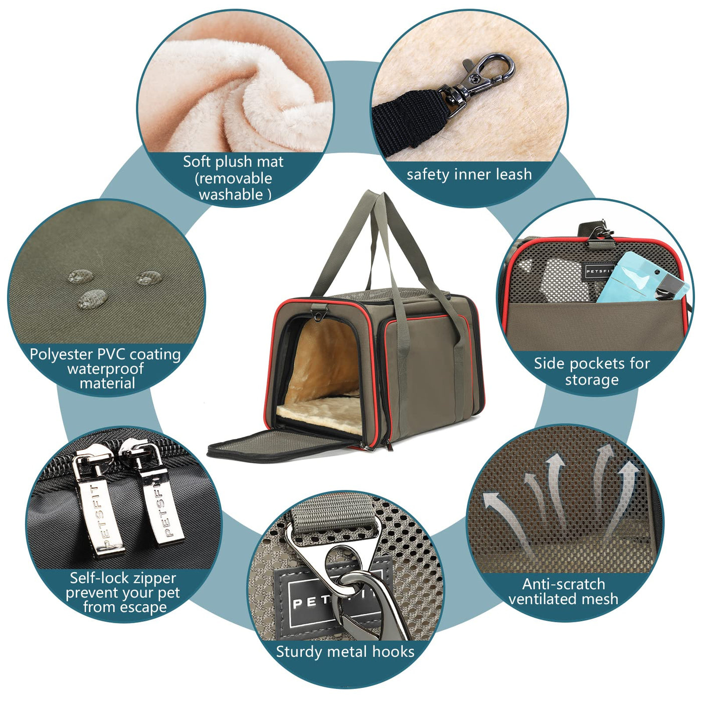 Petsfit Expandable Cat Dog Carrier For 2 Cats, 19'' Lx 12'' Wx 12'' H Soft-Sided Portable Pet Carrier For Travel, Dog Carrier Fo