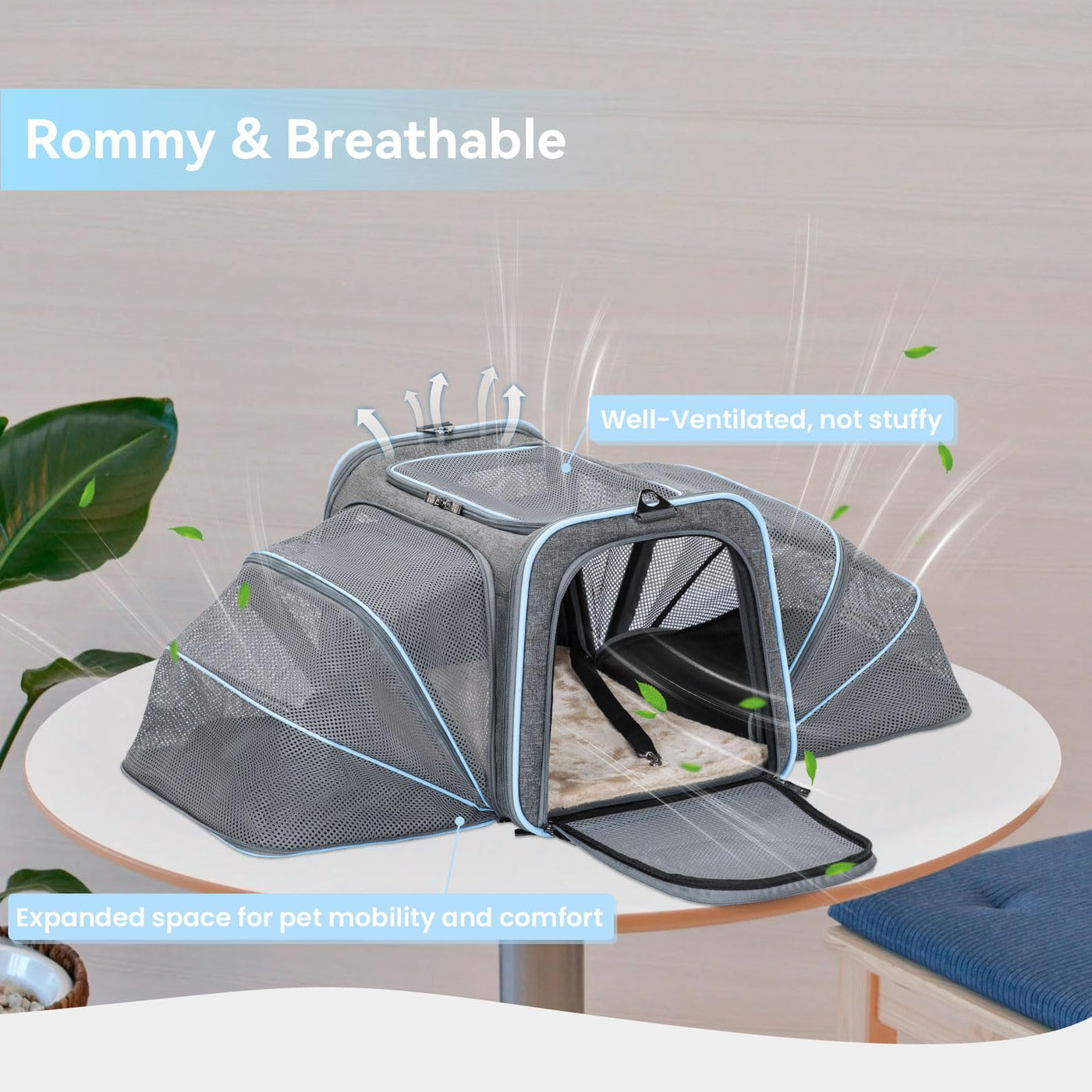 Petsfit Expandable Large Cat Carrier Small Dog Carriers Airline Approved, 17' Lx 11' Wx 11' H Soft-Sided Portable Washable Pet Travel Carrier With 2 Extension For Kittens, Puppies, Rabbits