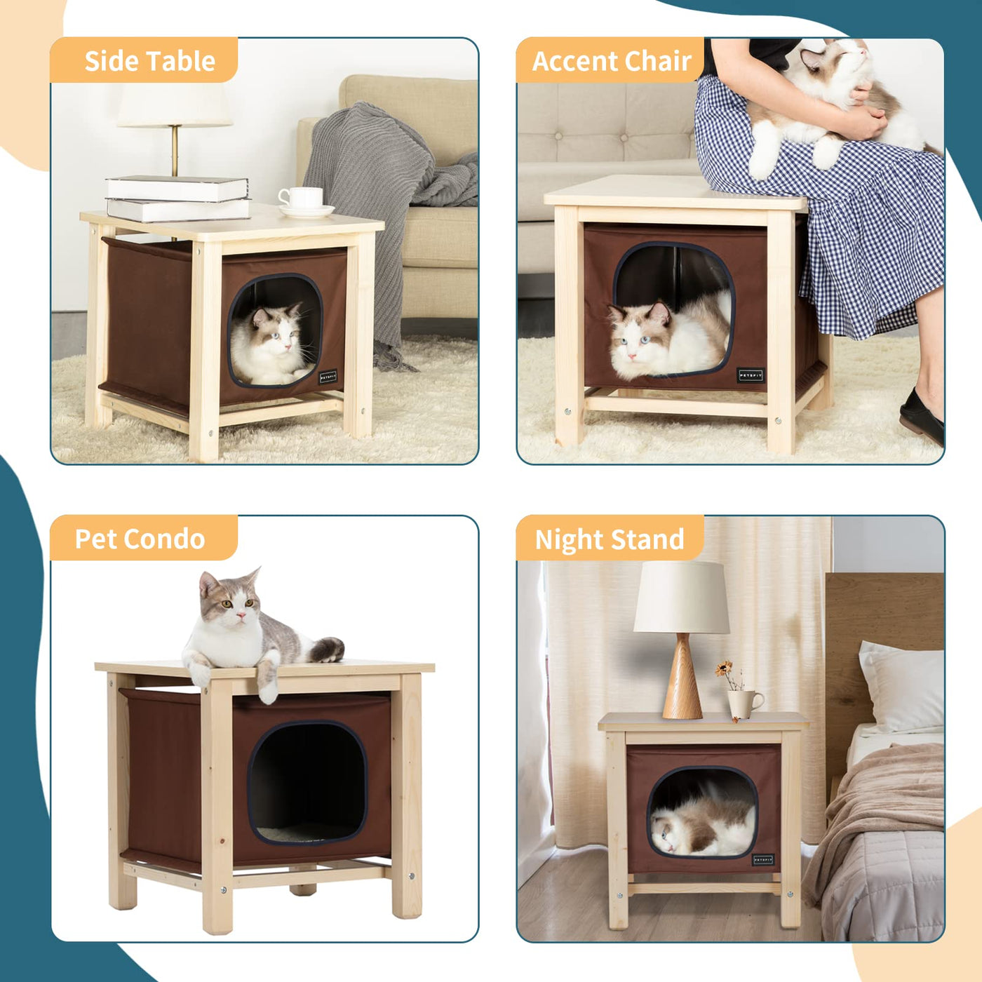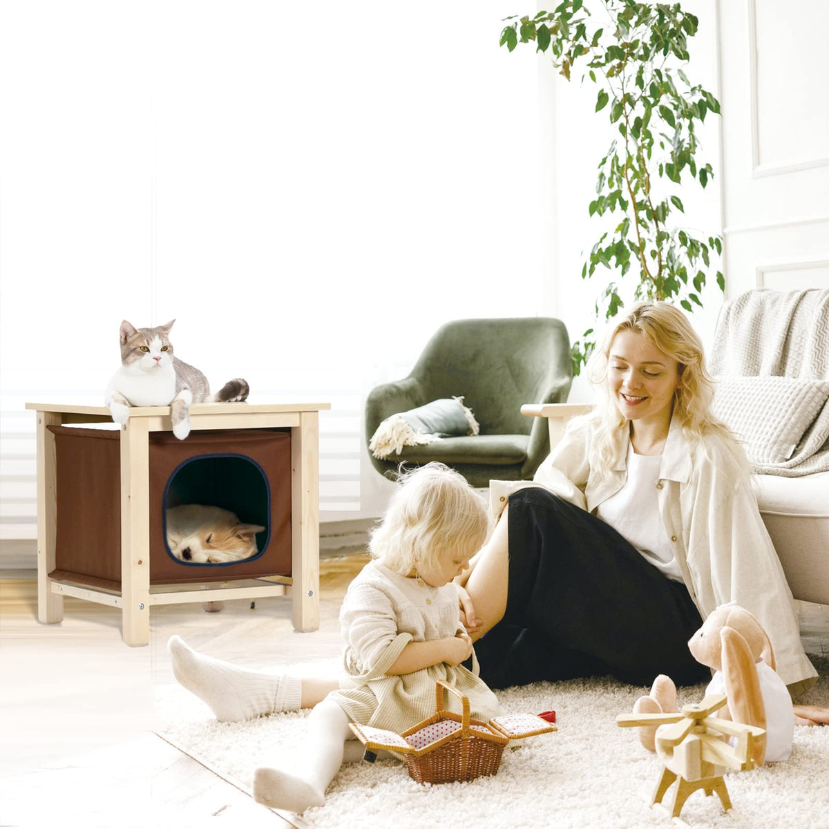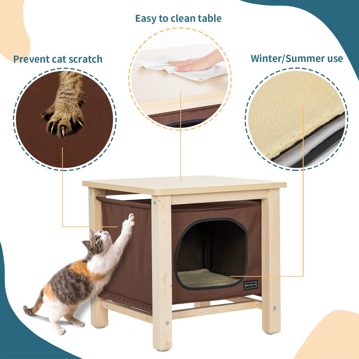 Our indoor cat house is a modern square design we create an opportunity to integrate your pet into your life this multifunctional solid spruce wood cat furniture/dog furniture can be used as a nightstand coffee table a side table to share space with your pets when you are reading working family time having a rest.