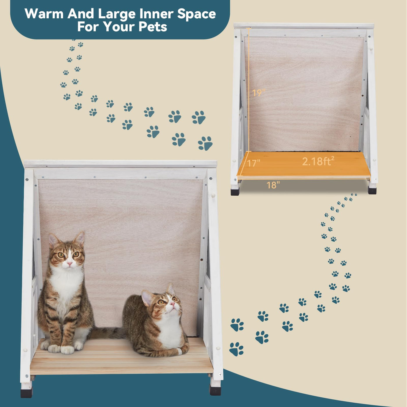 Unique Triangular Design: This outdoor cat house weatherproof(20''L x20''W x23''H) features a distinctive triangular shape adding a touch of style to your backyard or patio. The unique design stands out and provides a cozy shelter for your feline friend.