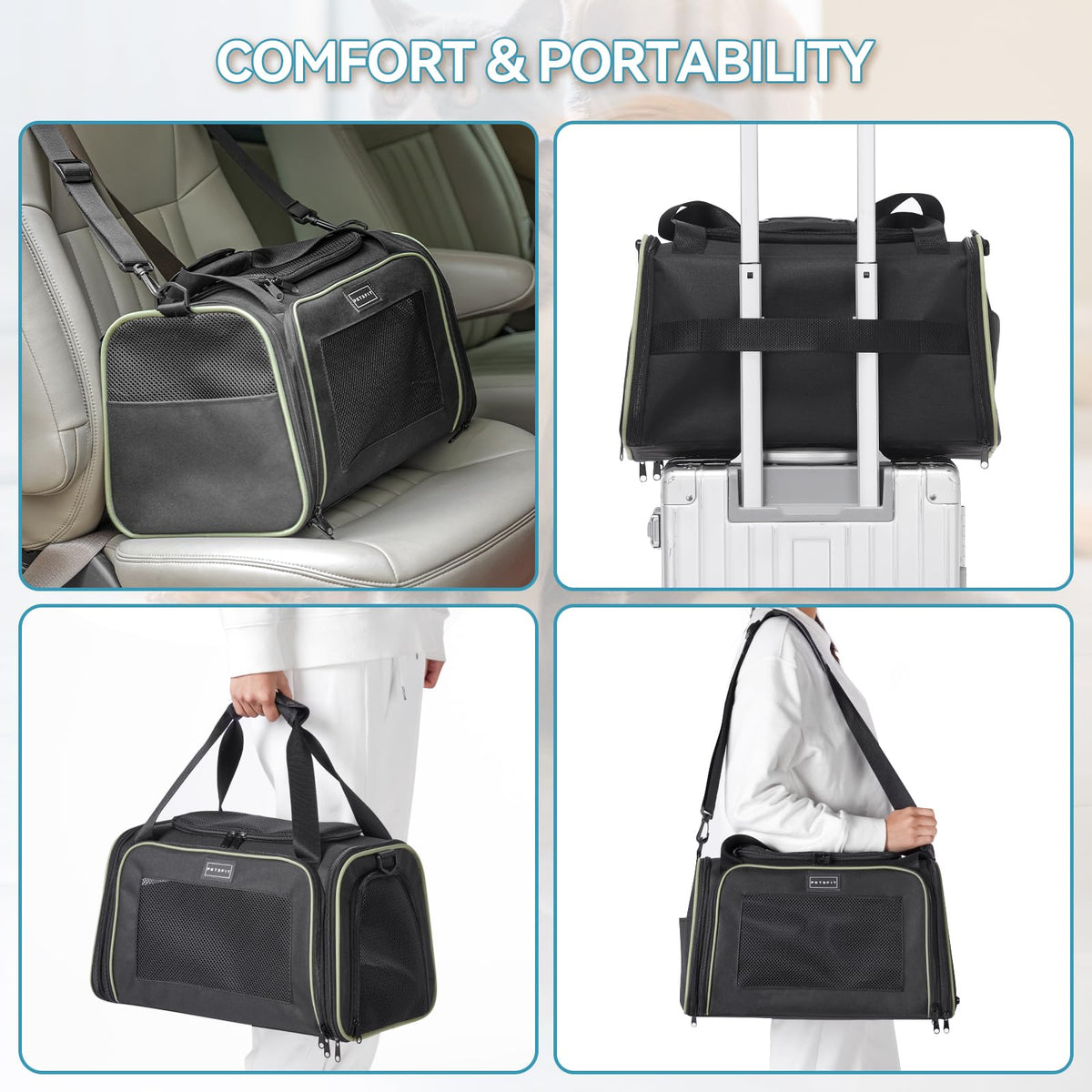 PETSFIT Pet Carrier Airline Approved with Extendable Mat Dog Carriers for Small Dogs TSA Approved Pet Carrier Puppy Carrier for Small and Medium Cats Under 12 Lbs Black