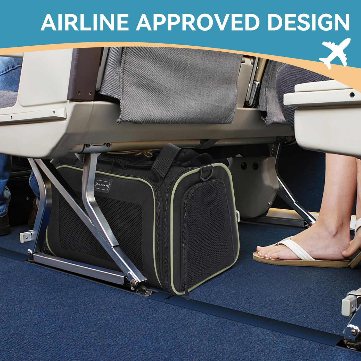 Q: Is the PETSFIT Pet Carrier airline approved?A: Yes, the PETSFIT Pet Carrier is airline approved and conforms to the under-seat dimensions of most airlines, making it suitable for air travel with your pet.