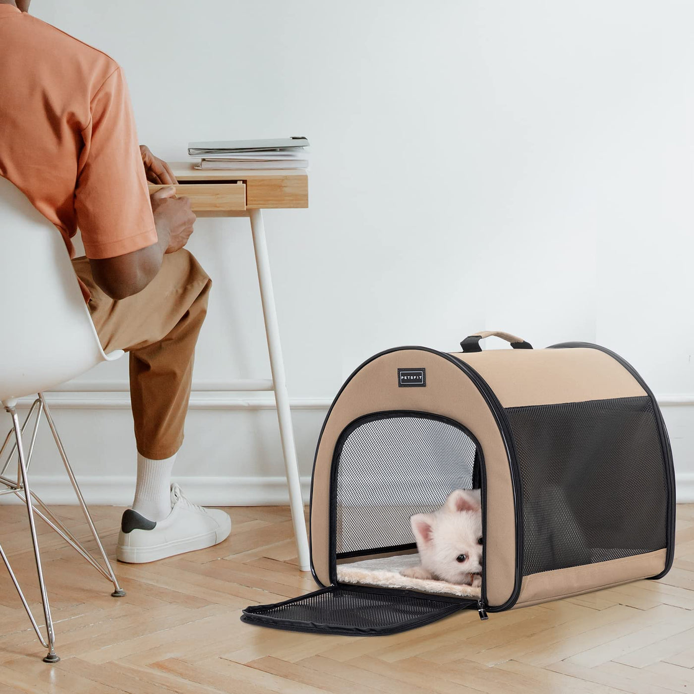 Petsfit Portable Dog Crate, Travel Dog Crate - 19.5 Inch Lightweight, Roomy, Easy To Set Up, Portable Pop Up Dog Carrier With Thick Mat, Sturdy Collapsible Dog Crate, Khaki