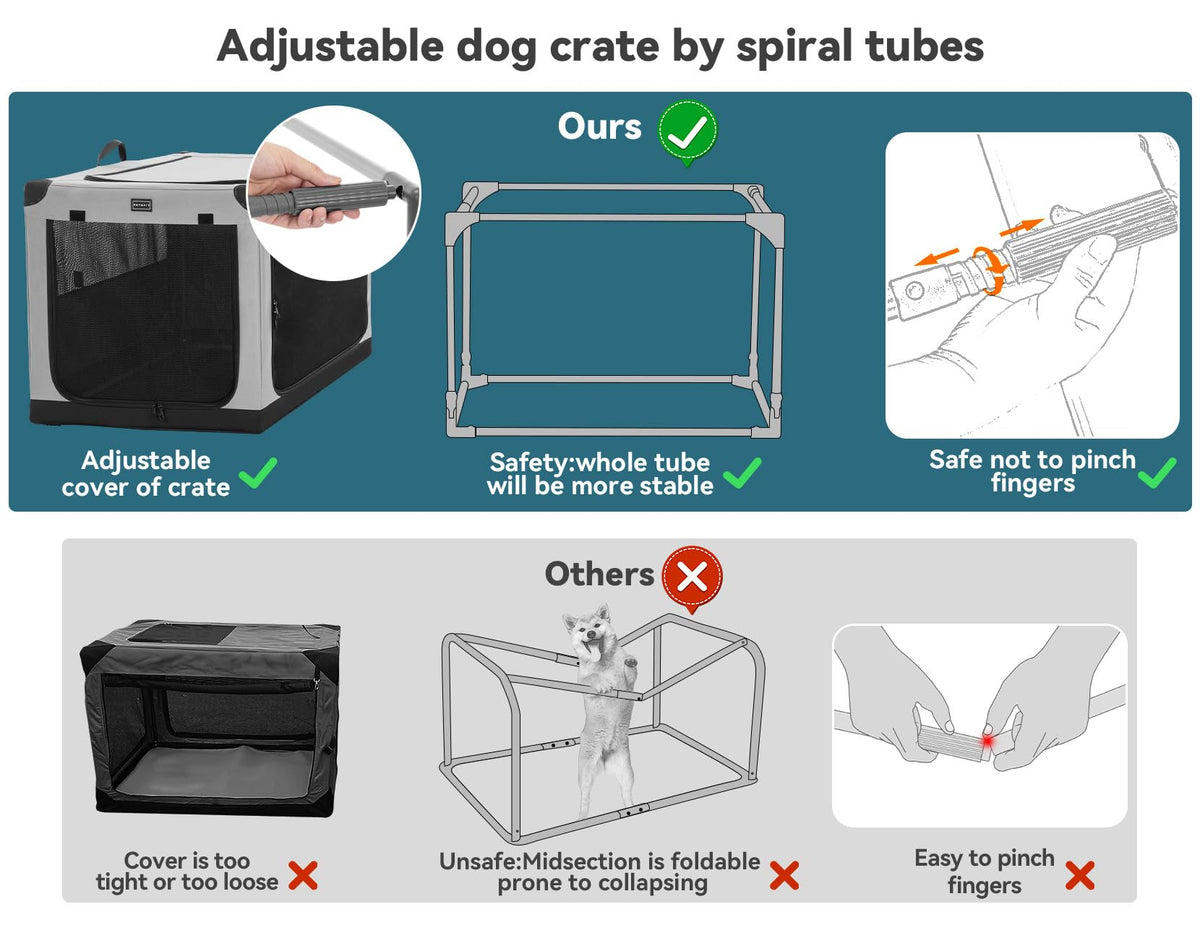 PETSFIT Soft Sided Dog Crate, with Patented Adjustable Fabric Cover, Chewproof & Lockable Mesh Doors, Waterproof Base Kennel Ind