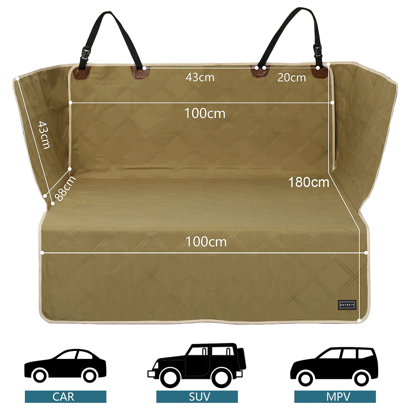 Universal fit. With a size of 39.4'' X 70.9'' Petsfit suv dog cover for cargo area is universally fits most standard vehicles especially for SUVs. This pet cargo liner suv can not only be used as a rear cargo liner but also as an outdoor picnic mat when going on an outing. Note: please measure your cargo area before purchase for best fit.