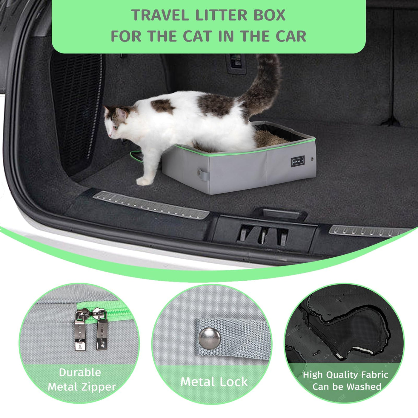 Petsfit Travel & Portable Cat Litter Box - Leak-Proof, Waterproof Bottom, Fit For Medium Cats & Kitties, Travel Litter Box With Lid, Standard Collapsible Litter Boxes Perfect For Hotel/Lawn/Car Travel