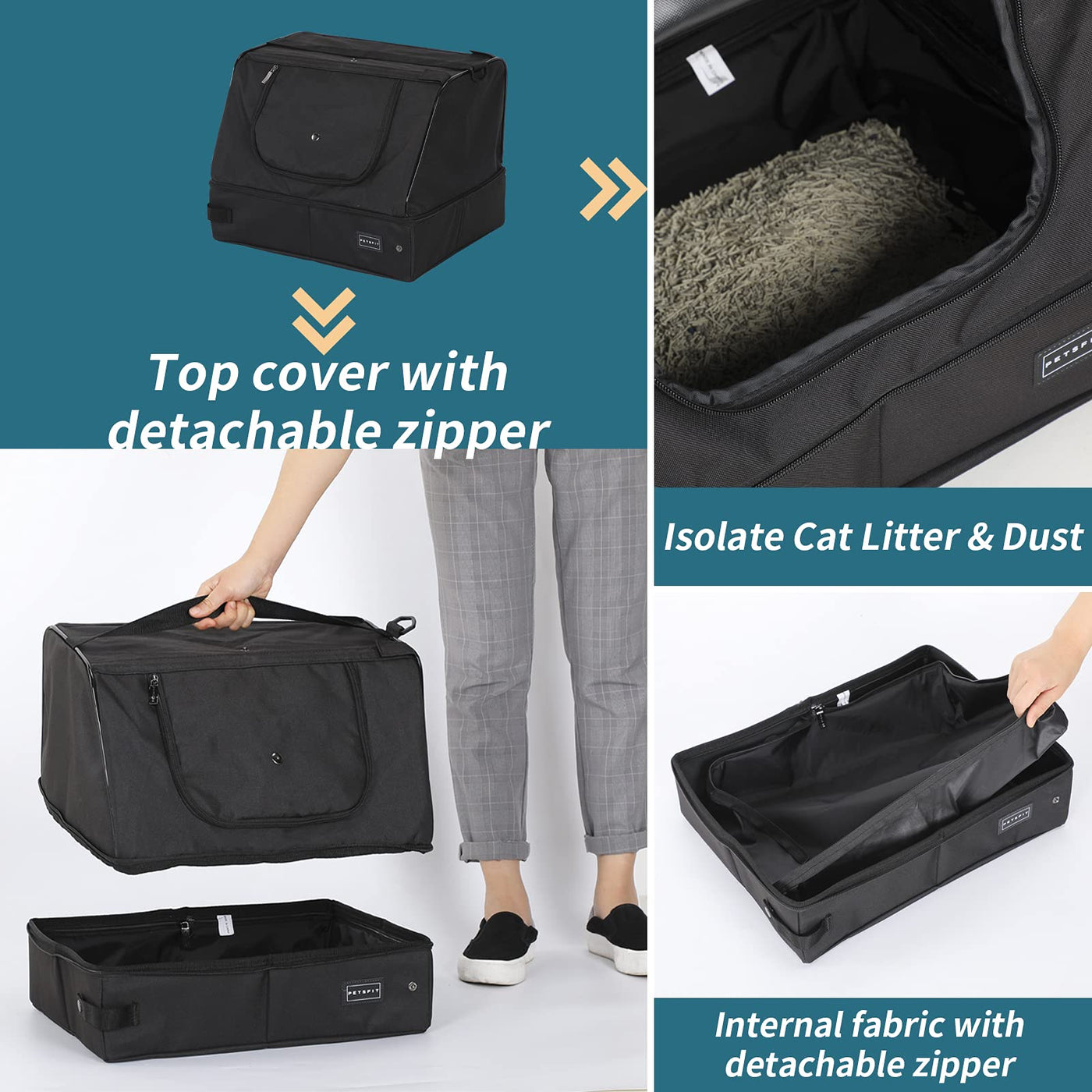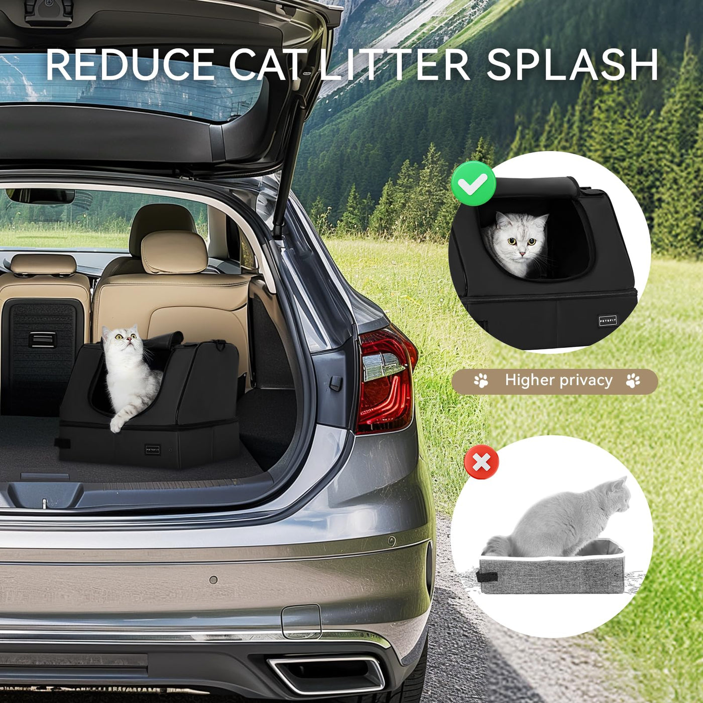 Petsfit Upgrade Travel Portable Cat Litter Box For Medium Cats & Kitties,Leak-Proof, Lightweight, Foldable (Black(With Lid), 17' Lx13 Wx12.5 H)