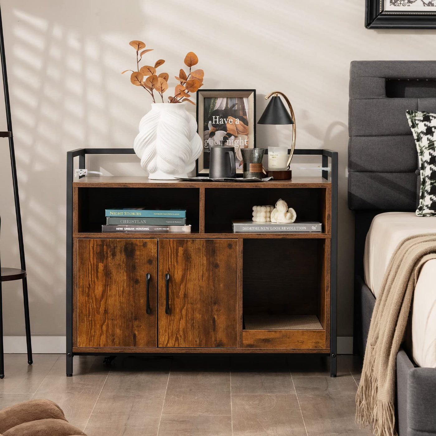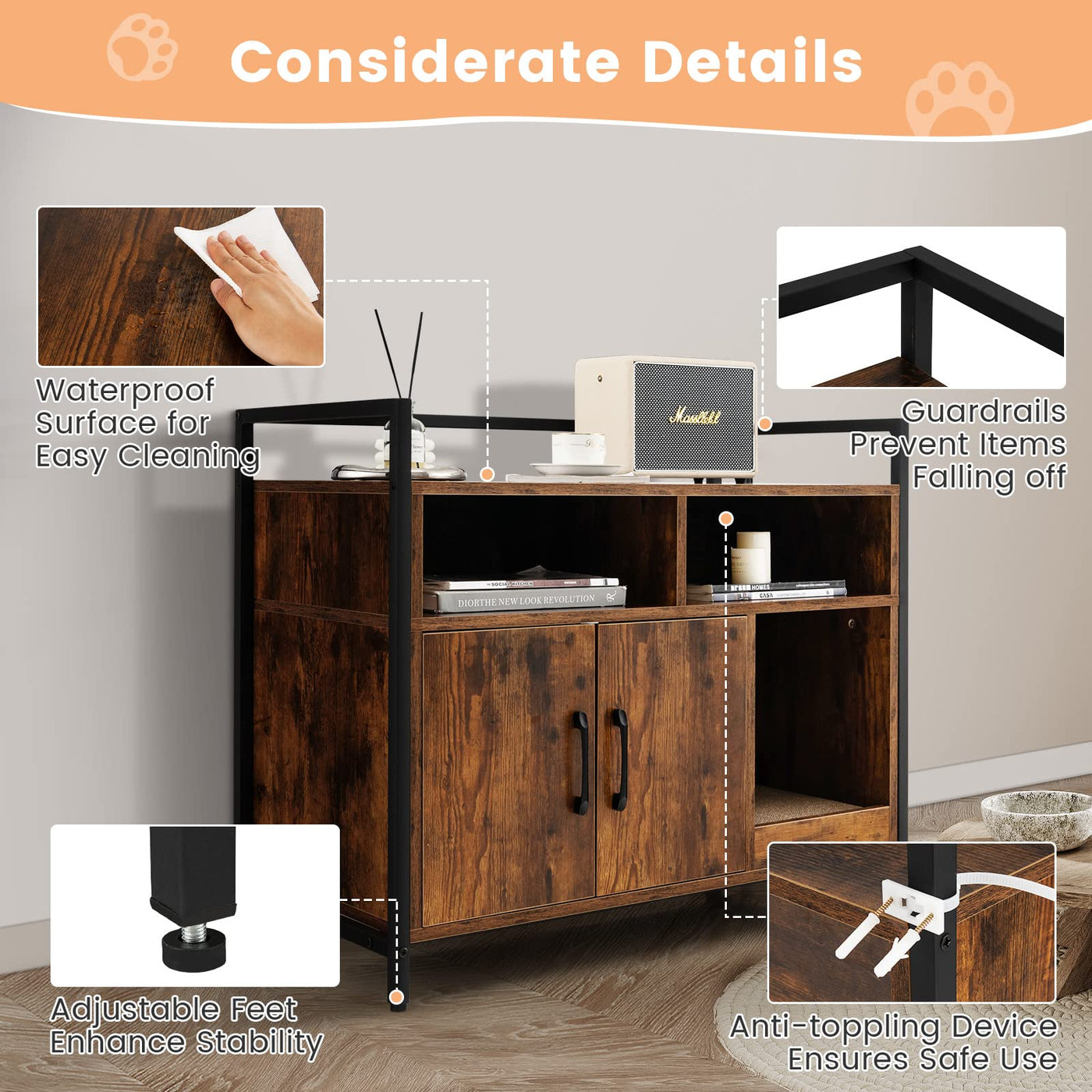 Petsite Cat Litter Box Enclosure, Litter Box Cabinet With Cat Scratcher, 2-Door Storage Cabinet, 2 Open Compartments And Air Vents, Wooden Hidden Litter Box Furniture, Rustic Brown