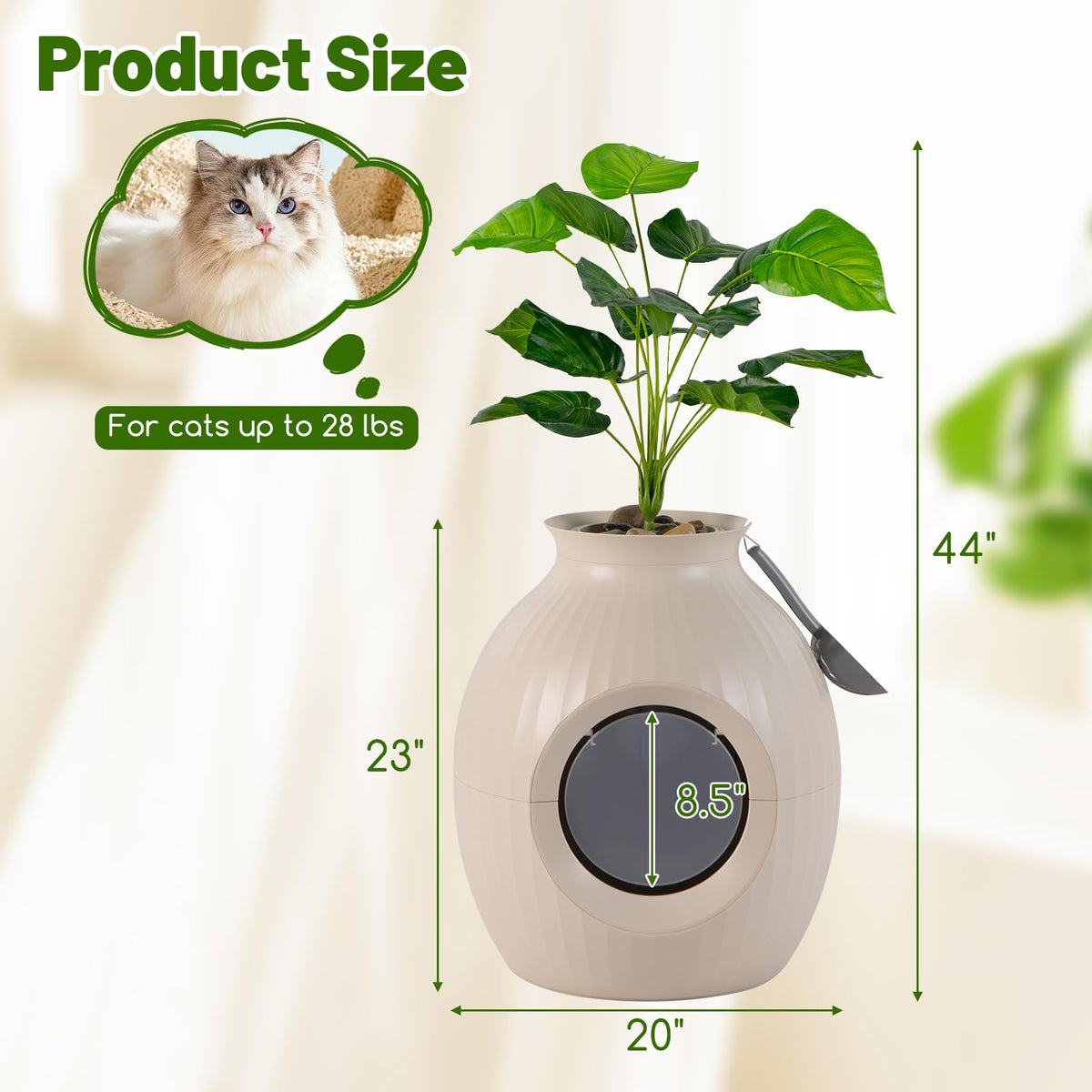 What Wed Like To Share: Keep A Fresh & Clean Environment For You With Our Hidden Litter Box Furniture! Why Choose Petsite? Compared To Traditional Carbon Filter Or Cotton Filter, Ours Adopts Electric Odor Removable System, Ensuring A Fresh And Inviting Atmosphere For Both You And Your Furry Friends. Moreover, The Cat Litter Box Plant Doubles As A Stylish Planter That Adds A Touch Of Greenery To Your Living Space. Unlike Others Without Lights, The 4 Kinds Of Changing Light Effects Will Illuminate Your Room With Enchanting Glow. Measuring 20 X 20 X 23(L X W X H), The Planter Litter Box Is Suitable For Large Cats Up To 28 Lbs. With Openable Door And Included Scoop, You Can Clean The Interior With Ease. And The Plant Litter Box Is Easy To Set Up Without The Need Of Tools. Specifications: Color: Beige+Green Material: Abs Overall Dimensions: 20 X 20 X 44 (L X W X H) Litter Box Size: 20 X 20 X 23 (L X W X H) Diameter Of The Entry Door: 8.5 Ground Clearance Of The Entry Door: 5.5 Power: 100-240V 50/60Hz 0.2A Power Cord Length: 5 Ft Recommended Cat Size: = 28 Lbs Capacity: 70 L Net Weight: 15 Lbs Package Includes: 1 X Plant Litter Box 1 X Cat Litter Scoop 1 X Artificial Plant 1 X Box Of Pebbles 1 X Power Cord 1 X Users Manual