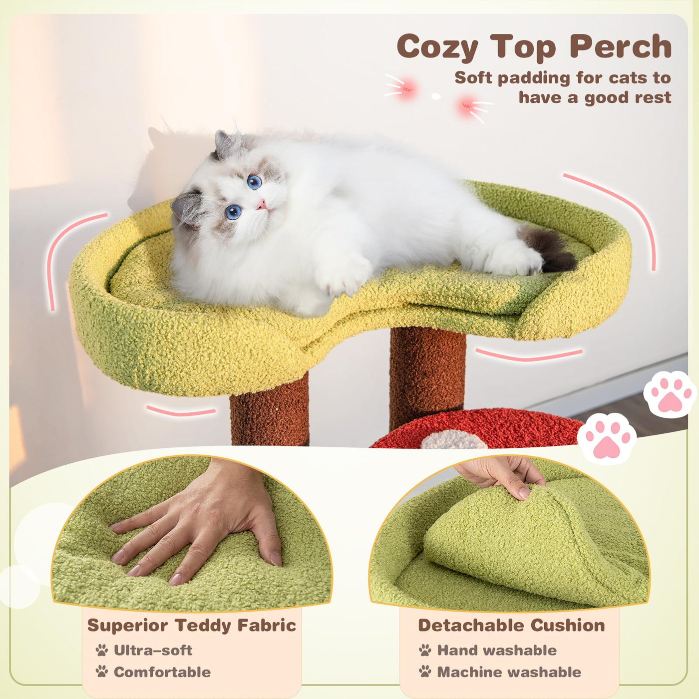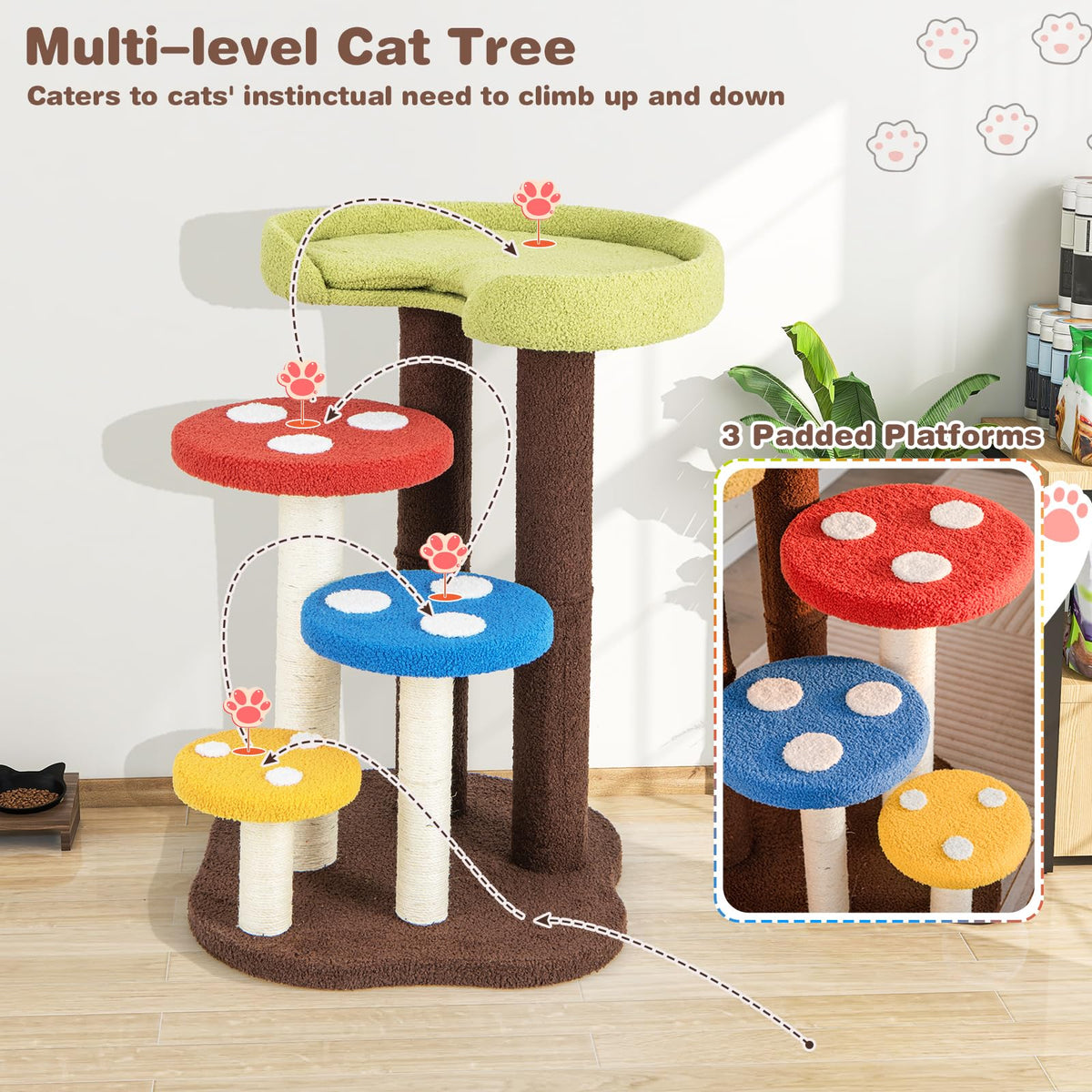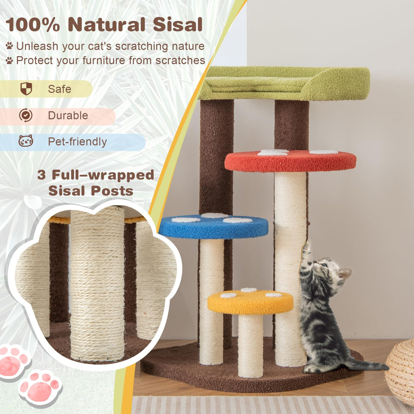 Petsite Mushroom Cat Tree, 37 Inches Tall Multi-Level Cat Tower With Natural Sisal Scratching Posts, Cozy Top Perch & Removable