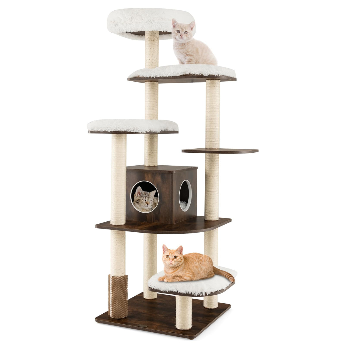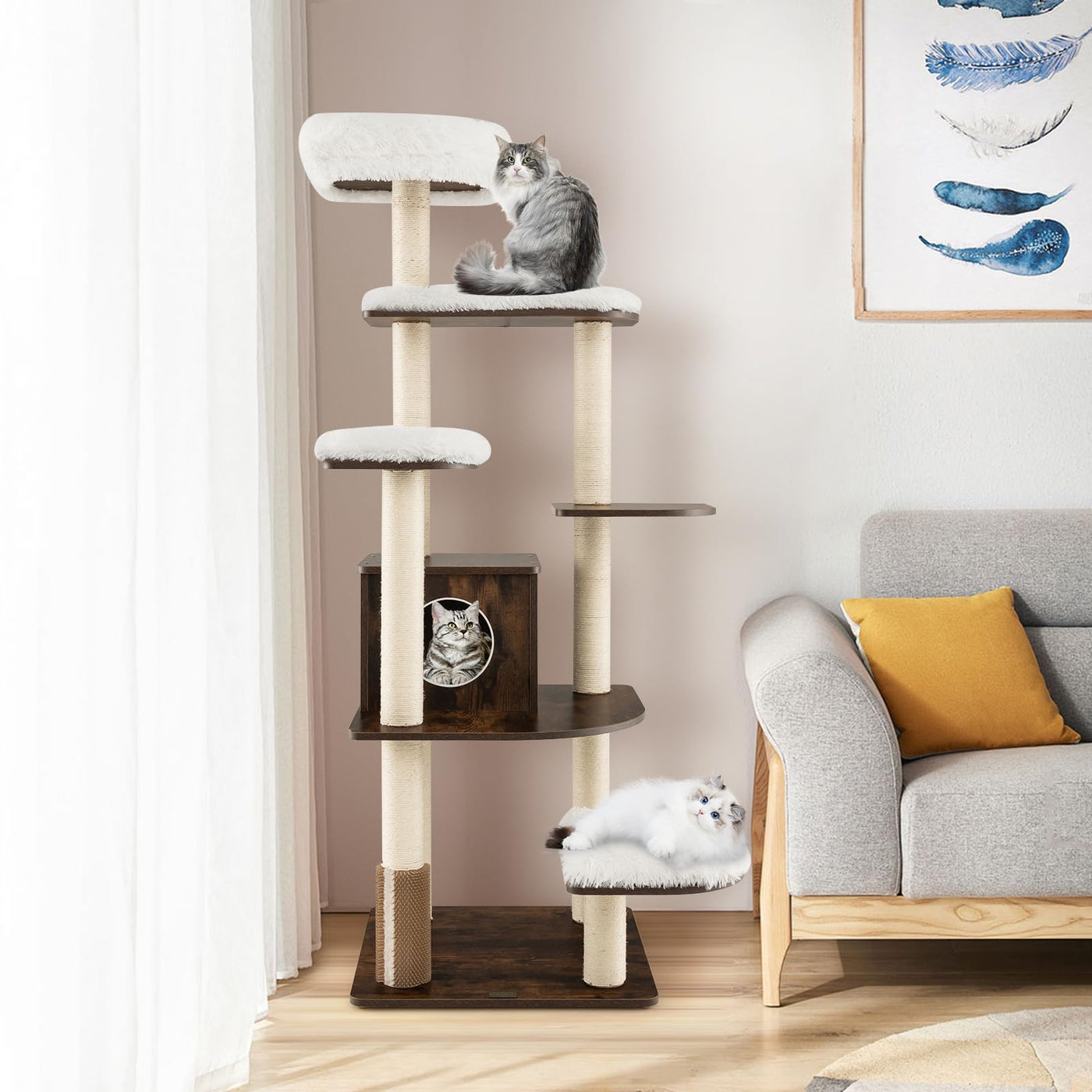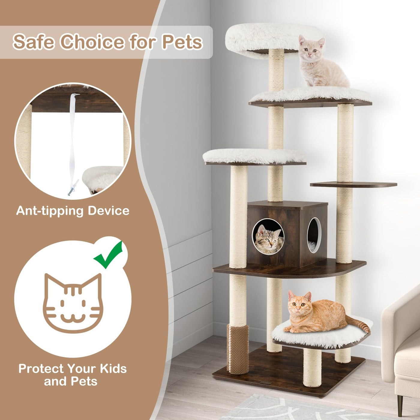 Petsite Tall Cat Tree For Indoor Cats, 71 Inches Multi-Level Modern Cat Tower With Plush Perch, Cozy Condo, Platforms, Sisal Scr