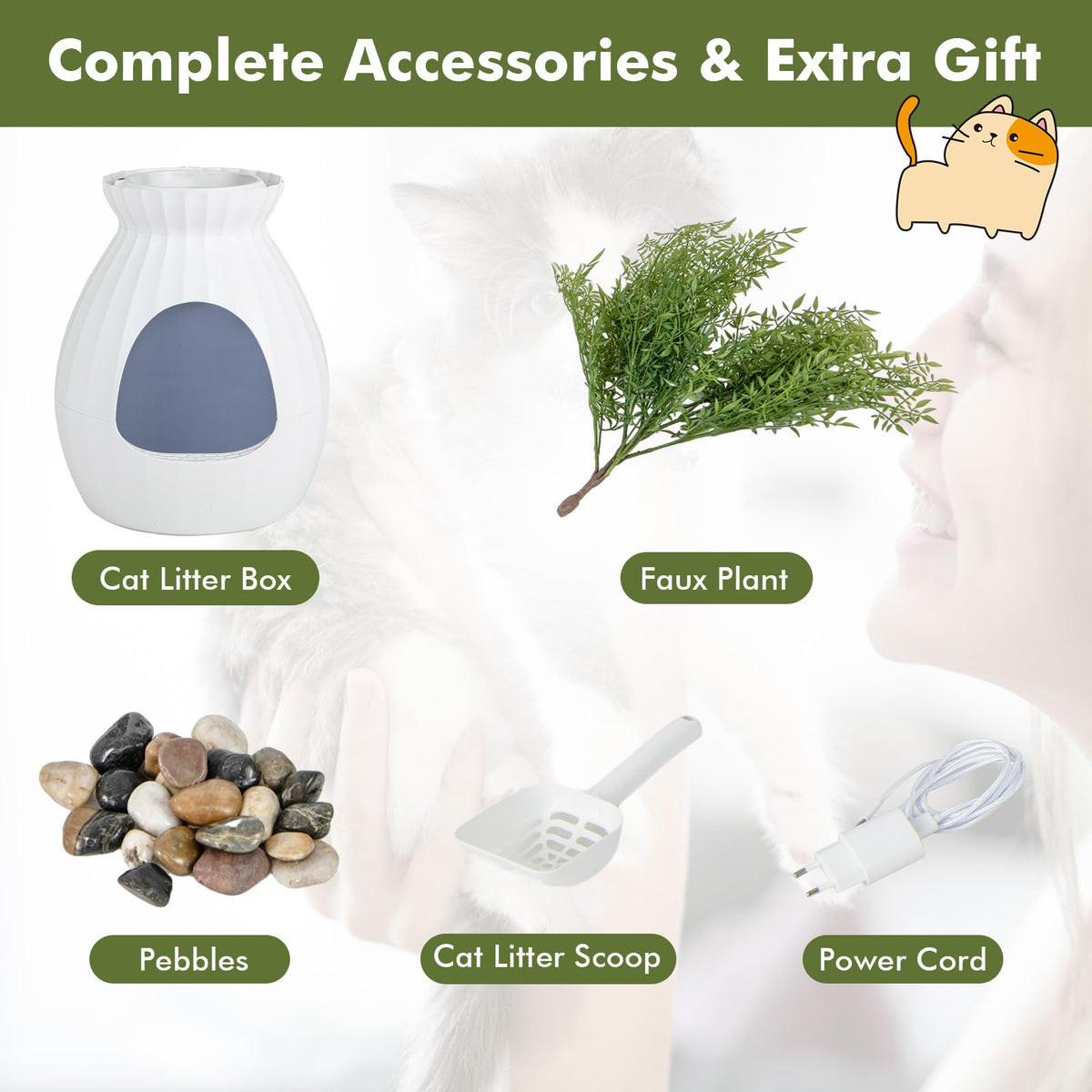 What Wed Like To Sharesay Farewell To Unsightly Litter Boxes As You Welcome A Stylish Solution For Your Feline Companion! The Cat Plant Litter Box And Planter Combo Not Only Conceals With Its Unique Flower Pot Shape But Also Brings A Touch Of Elegance To Your Home. Complete With An Artificial Plant, Pebbles, And Customizable Decor, It Transforms Your Living Area. The Electronic Odor Removal System Ensures A Fresh Atmosphere, While The Durable Design Prioritizes Your Pet'S Well-Being. Easy Assembly, Discreet Space, And Enduring Quality Make Our Hidden Cat Litter Box Exceptional.Specifications:Color: White+Greenmaterial: Abs, Sponge, Pebble,Pe, Polyester Fabricoverall Dimensions: 20 X 20 X 23 / 50 X 50 X 59 Cm (L X W X H)Size Of The Entry Door: 10.5 X 10.5 / 27 X 26.5 Cm(L X W)Ground Clearance Of The Entry Door: 5.5 / 14.5 Cmweight Capacity: 28 Lbs / 13 Kgcapacity: 63 Lnet Weight: 14 Lbs / 6.5 Kgpackage Includes:1 X Plant Litter Box1 X Cat Litter Scoop1 X Artificial Plant1 X Box Of Pebbles1 X Power Cord1 X Users Manual