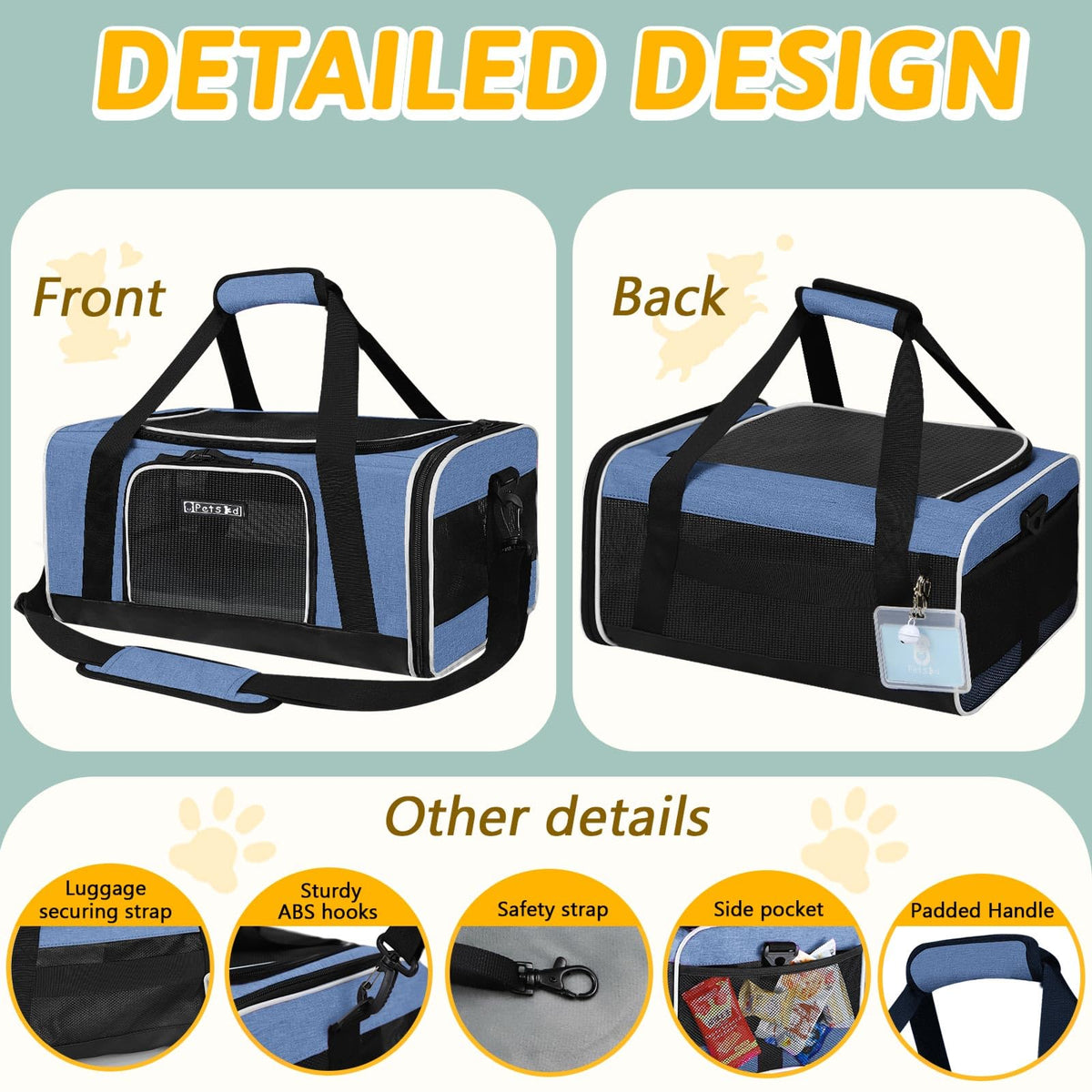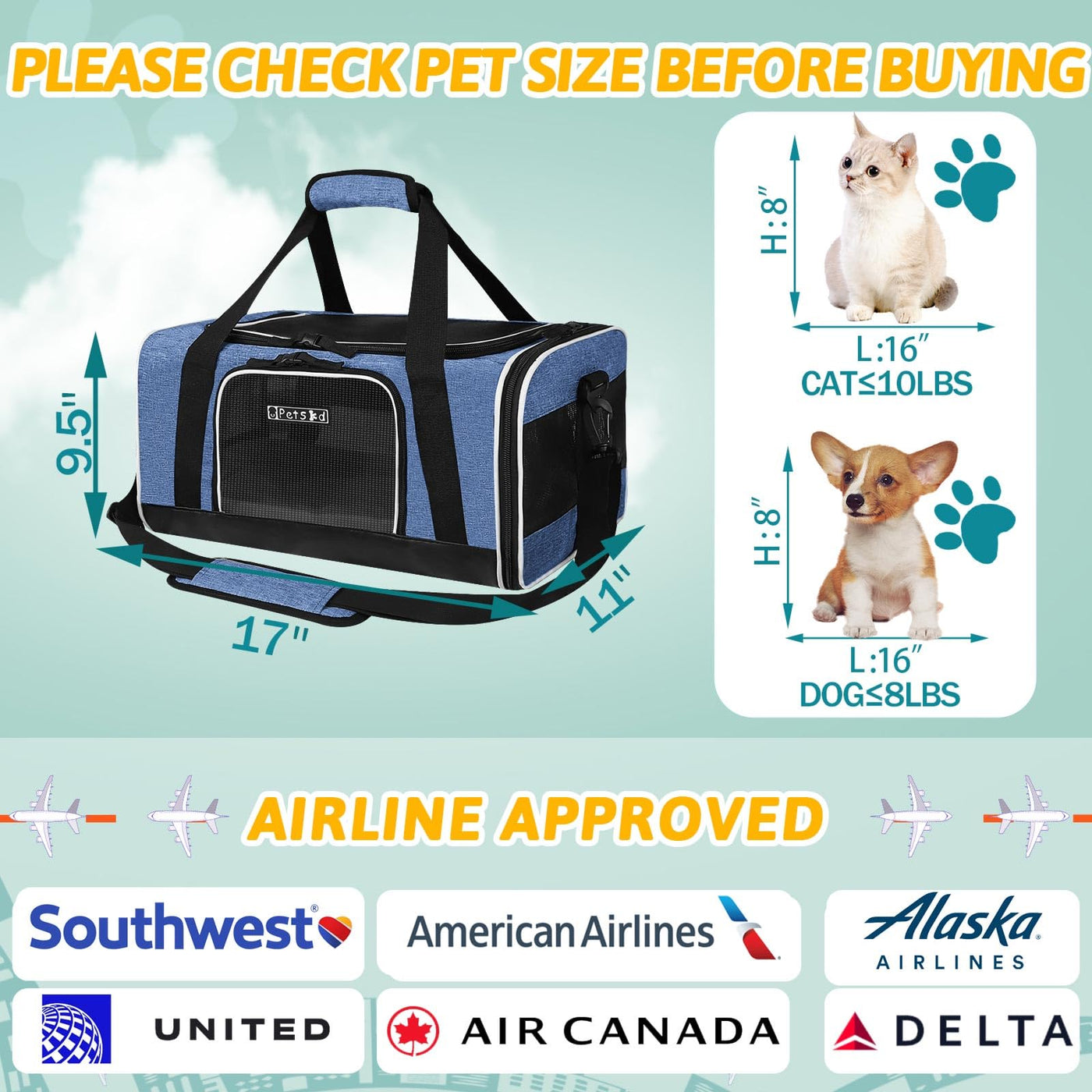 Petskd Pet Carrier 17X11X9.5 Alaska Airline Approved,Pet Travel Carrier Bag For Small Cats And Dogs, Soft Dog Carrier For 1-10 Lbs Pets,Dog Cat Carrier With Safety Lock Zipper(Blue)