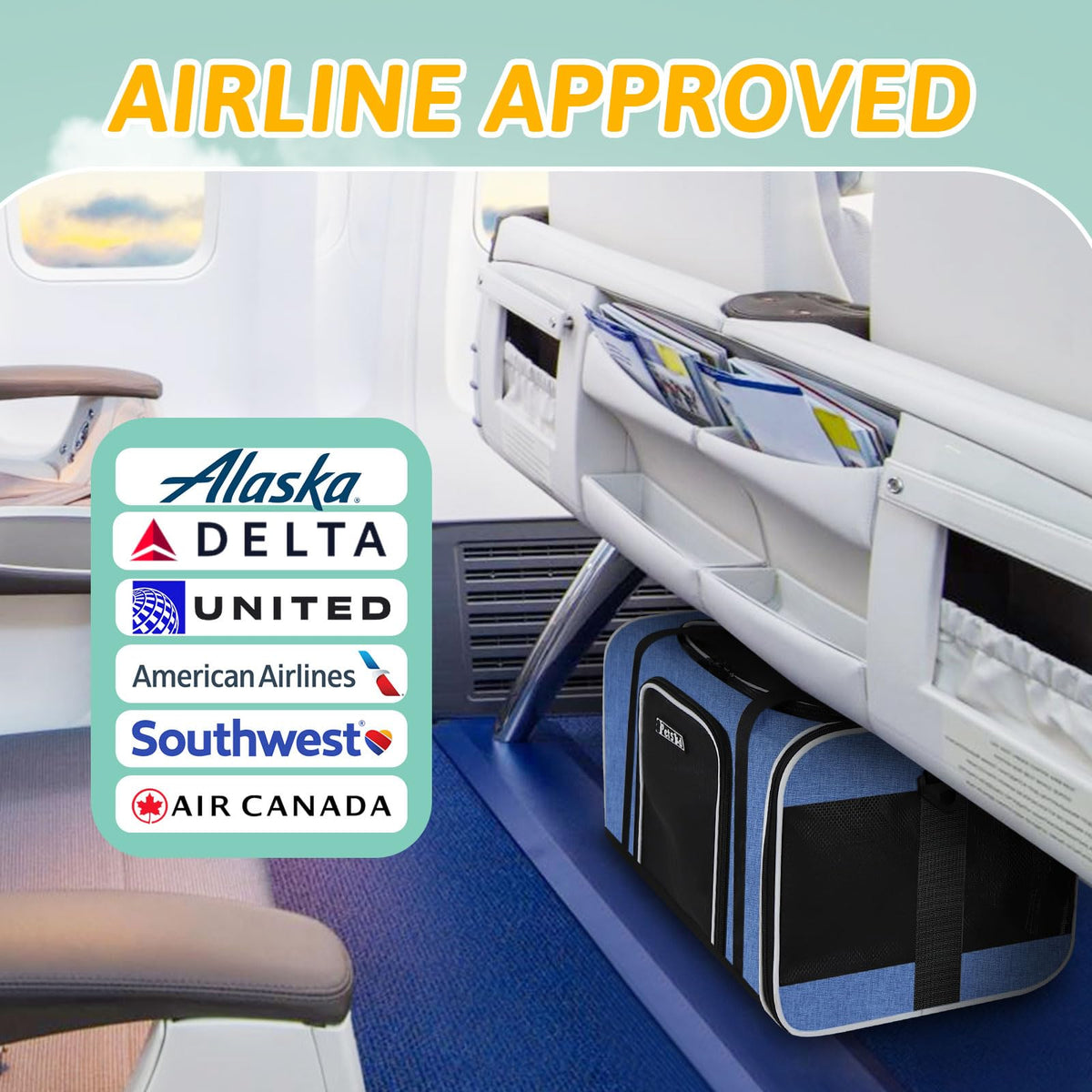 Q: Is the Petskd Pet Carrier airline approved?A: Yes, the Petskd Pet Carrier is airline approved and designed to fit under the seat for major airlines including Alaska Airlines, Southwest, Delta, United, American Airlines, and Air Canada.