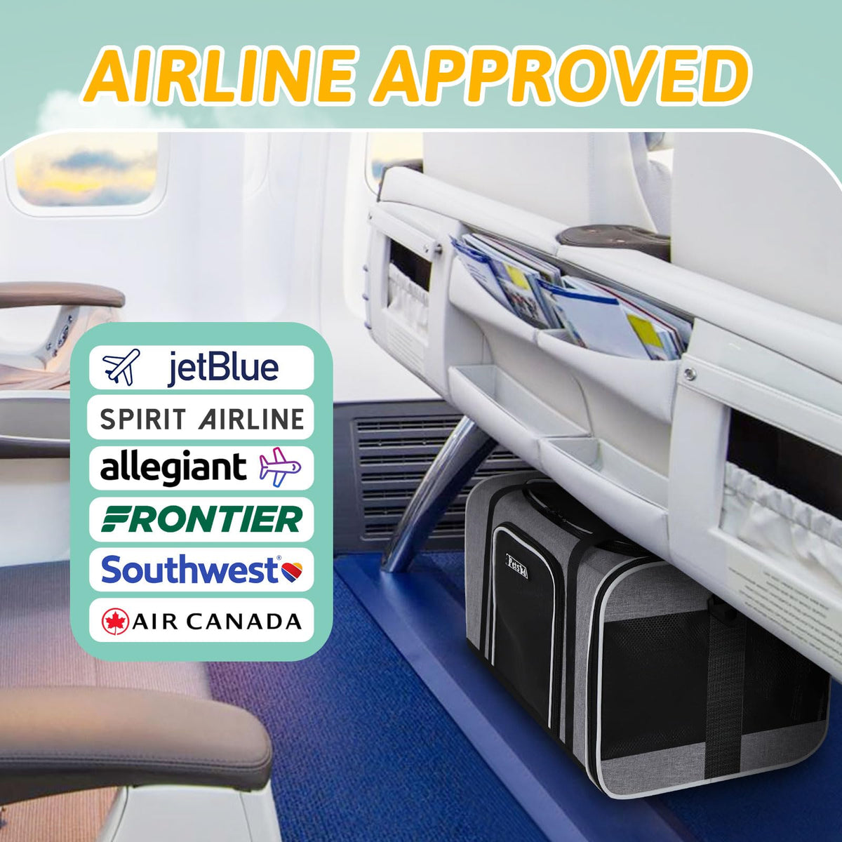 Q: Is the Petskd Pet Carrier suitable for airline travel?A: Yes, the Petskd Pet Carrier is airline approved and designed to fit under the seat in the cabin for airlines like JetBlue and Allegiant Airlines. It complies with various airline size regulations, making it a great choice for flying with your small pets.