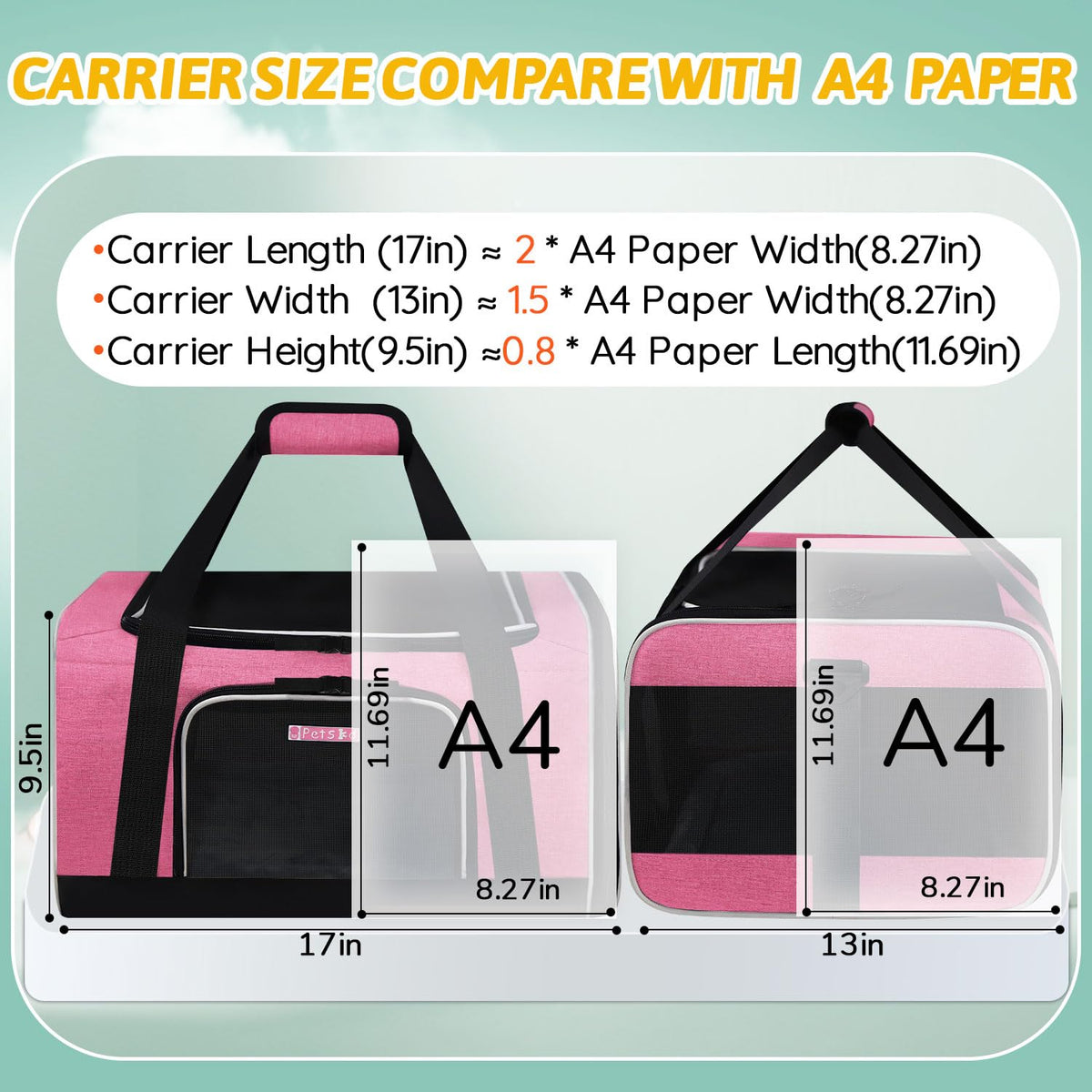 Petskd Pet Carrier 17X13X9.5 Southwest Airline Approved,Pet Travel Carrier Bag For Small Cats And Dogs, Soft Dog Carrier For 1-15 Lbs Pets,Dog Cat Carrier With Safety Lock Zipper (Pink)