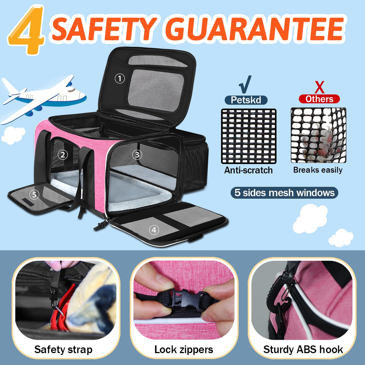 Petskd Top And Side Expandable Pet Carrier 17X11X9.5 Inches Alaska Airline Approved, Soft-Sided Carrier For Small Cats And Dogs