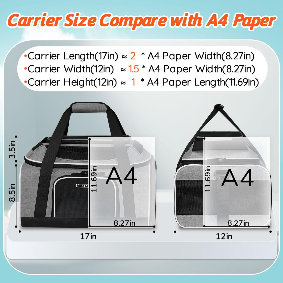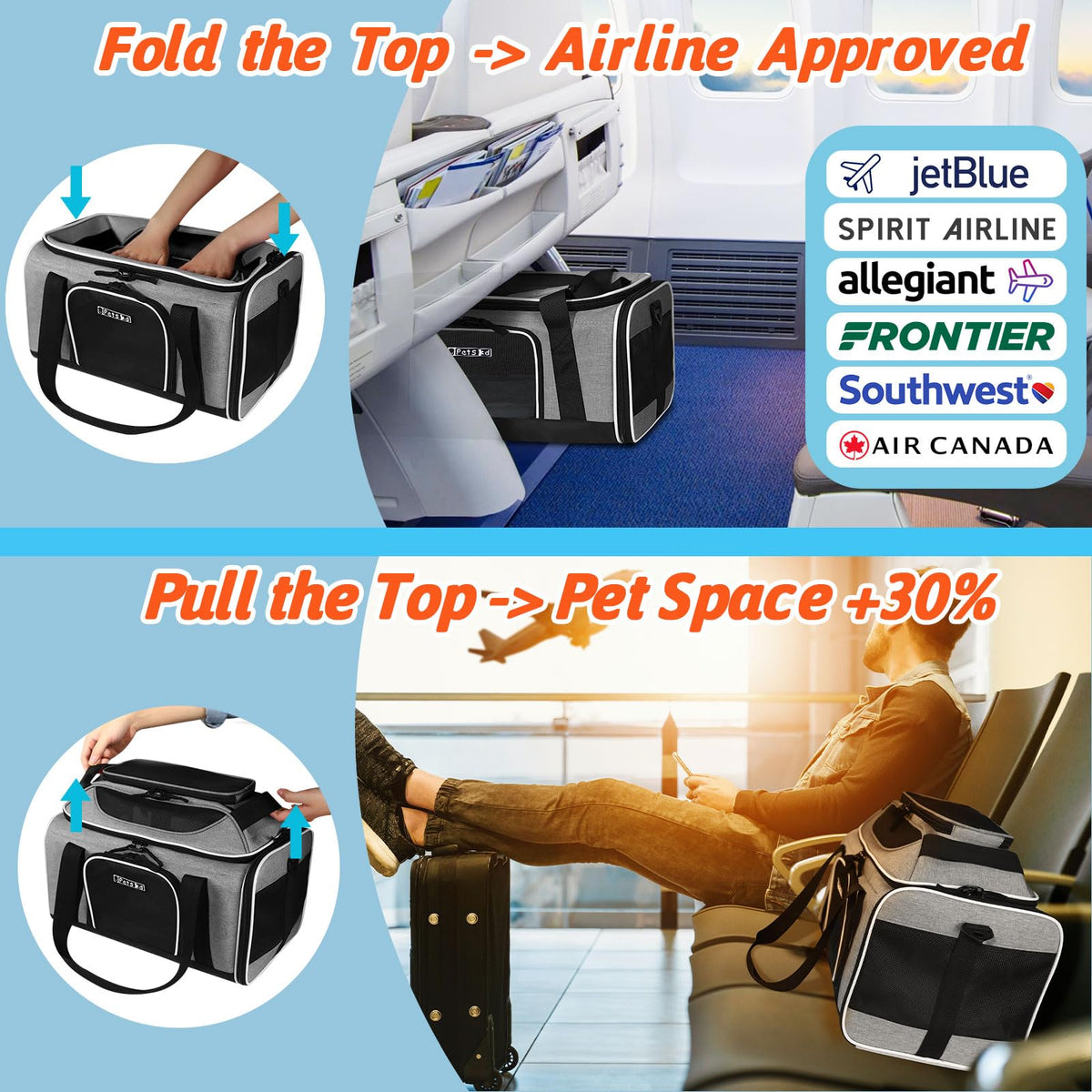 Petskd Top-Expandable Pet Carrier 17X12X8.5 Inches Jetblue Frontier Spirit Airline Approved, Soft-Sided Carrier For Small Cats And Dogs With Locking Safety Zippers And Anti-Scratch Mesh(Grey)