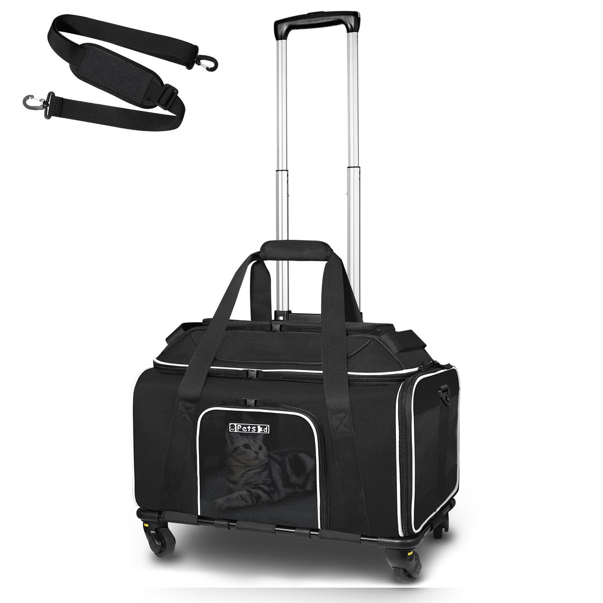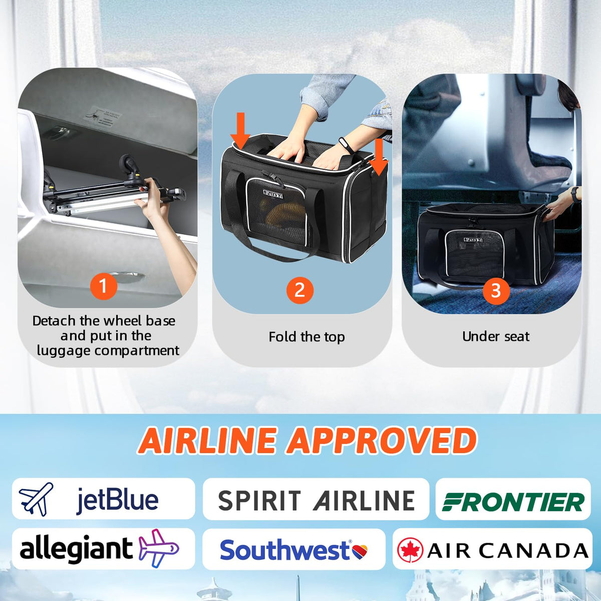 Petskd Top-Expandable Pet Carrier With Wheels 17X12X8.5 Inches Jetblue Allegiant Spirit Airline Approved, Soft-Sided Carrier For