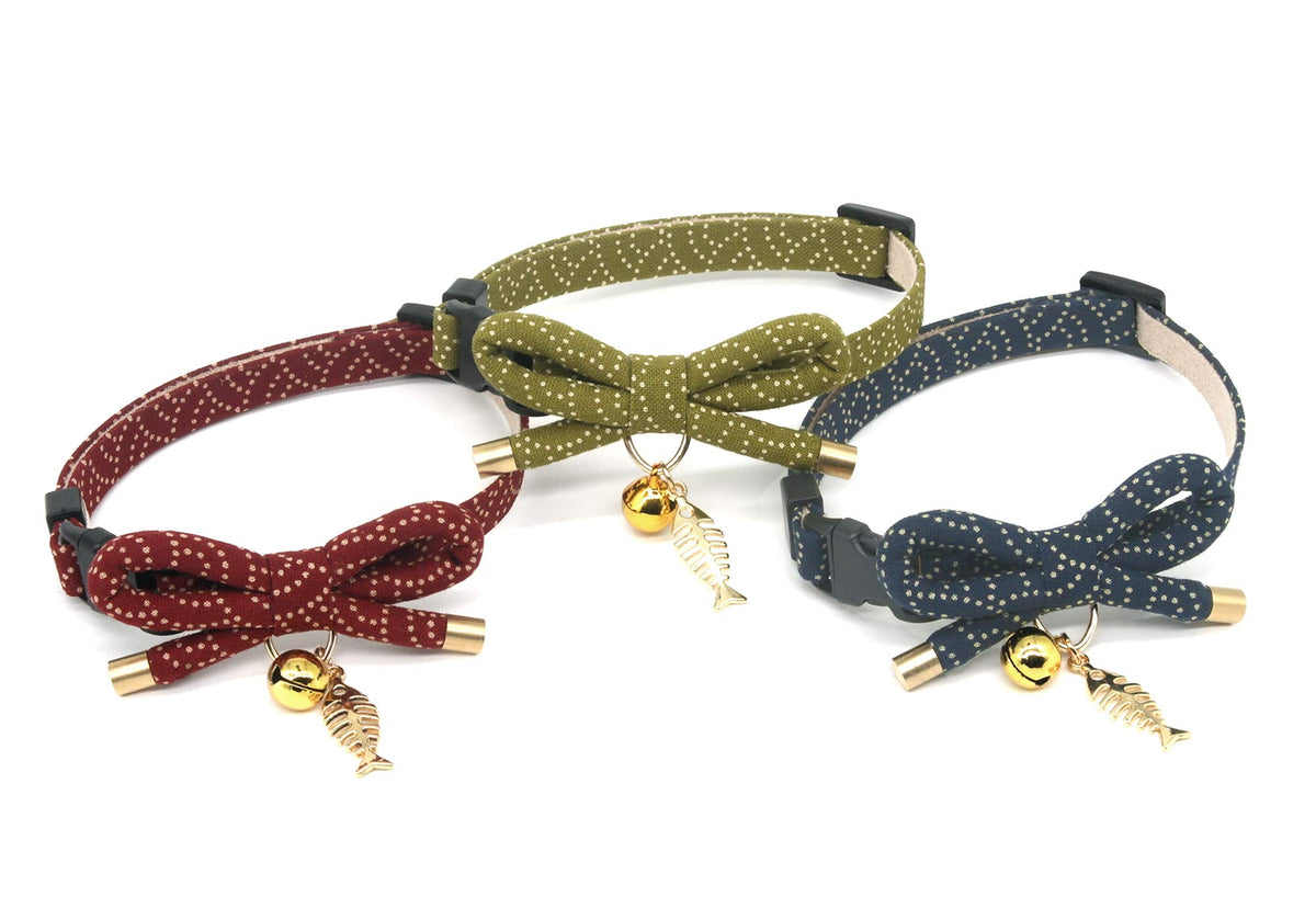 Petsokoo Cute Bowtie Cat Collar With Bell. Japanese Stylish Bowknot & Fish Charm. Safety Breakaway, Soft, Lightweight, For Girl Boy Male Female Cats Kitten,Green