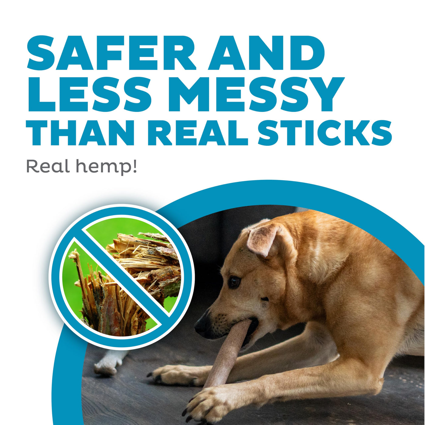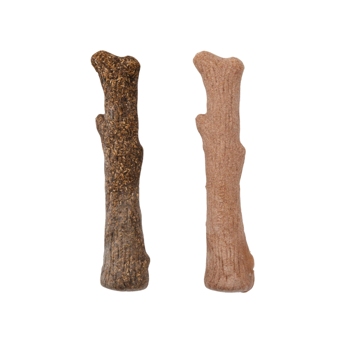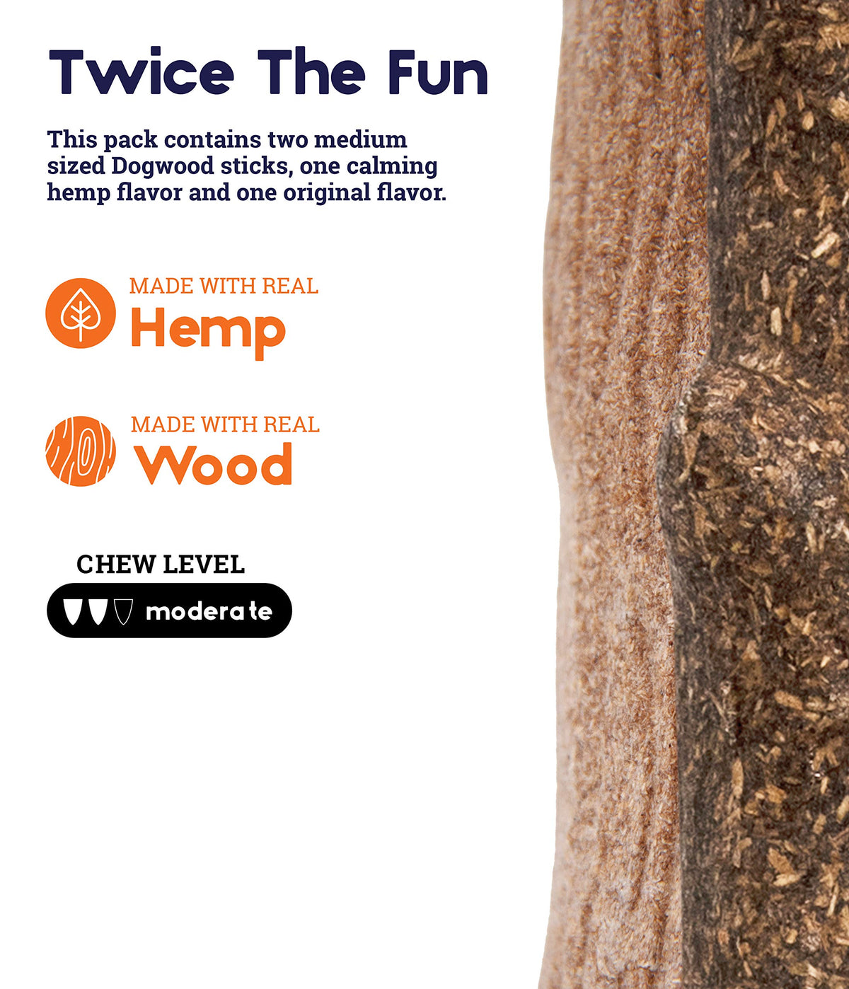 A safe and healthy alternative to chewing real wood sticks, Petstages Dogwood product line has all the taste and texture of a natural tree branch, but will last much longer and won’t splinter and cause potential harm to your beloved pup. Made in the U.S.A. to ensure quality and care, Dogwood combines real wood with lead-free and phthalate-free synthetic strength, making it a chew toy favorite amongst dogs. With a variety of scents like the smell of real wood or Mesquite BBQ, this alternative chew toy is a treat for letting your dog work out their destructive chewing or for pups dealing with teething pains. Dogwood alternative wood chew sticks are also great for outdoor chew time and can even float in water! SAFETY AND CARE: Petstages chews are non-edible and are meant for dogs only. As with any chew toy, we always recommend monitoring your dog's use and replacing after reasonable wear, no toy is indestructible. Remove if excessive consumption occurs or pieces larger than a piece of rice are chewed off. Know your dog’s chewing habits and teeth strength, your pet’s safety is your responsibility. For additional safety information, please visit our Petstages safety page to review our suggested 10 Chew Commandments.