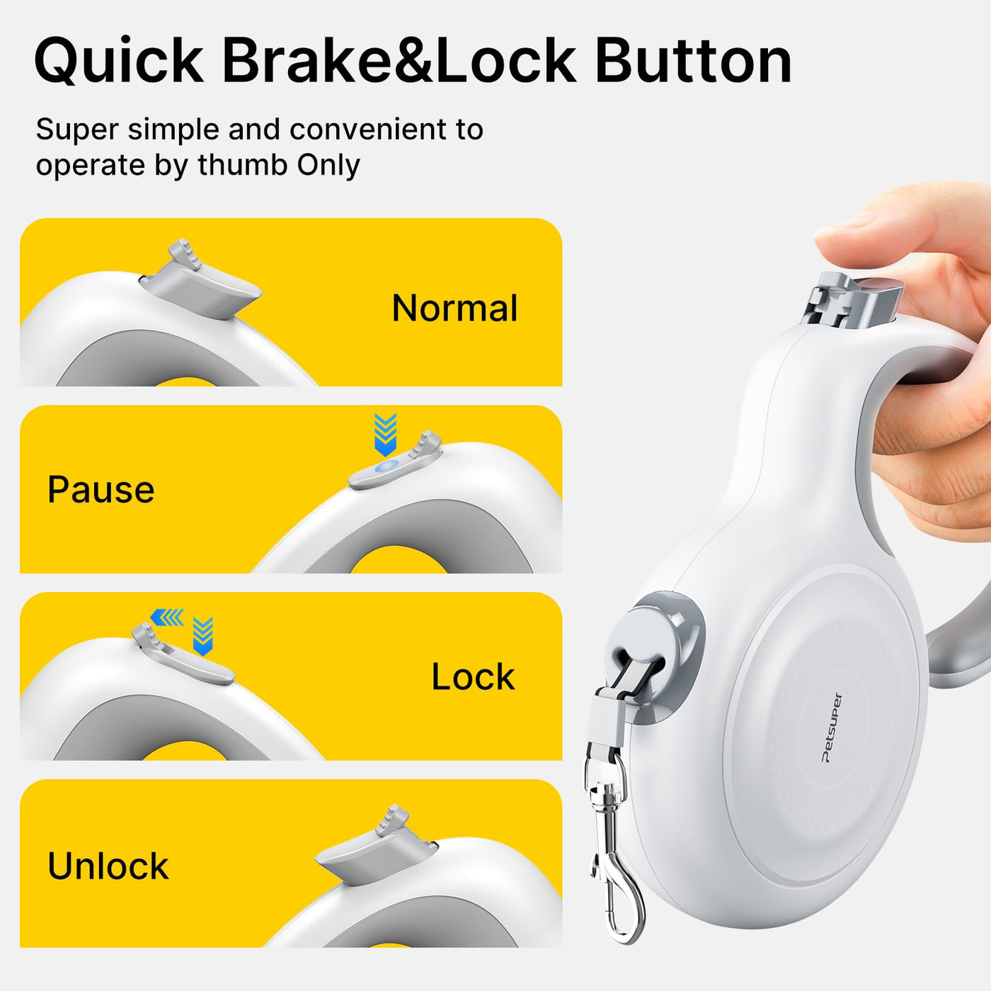 Petsuper Autobrake Retractable Dog Leash,16Ft Dog Leash Retractable For Dogs Up To 132Lbs,360 No Tangle,One-Handed Brake X-Large