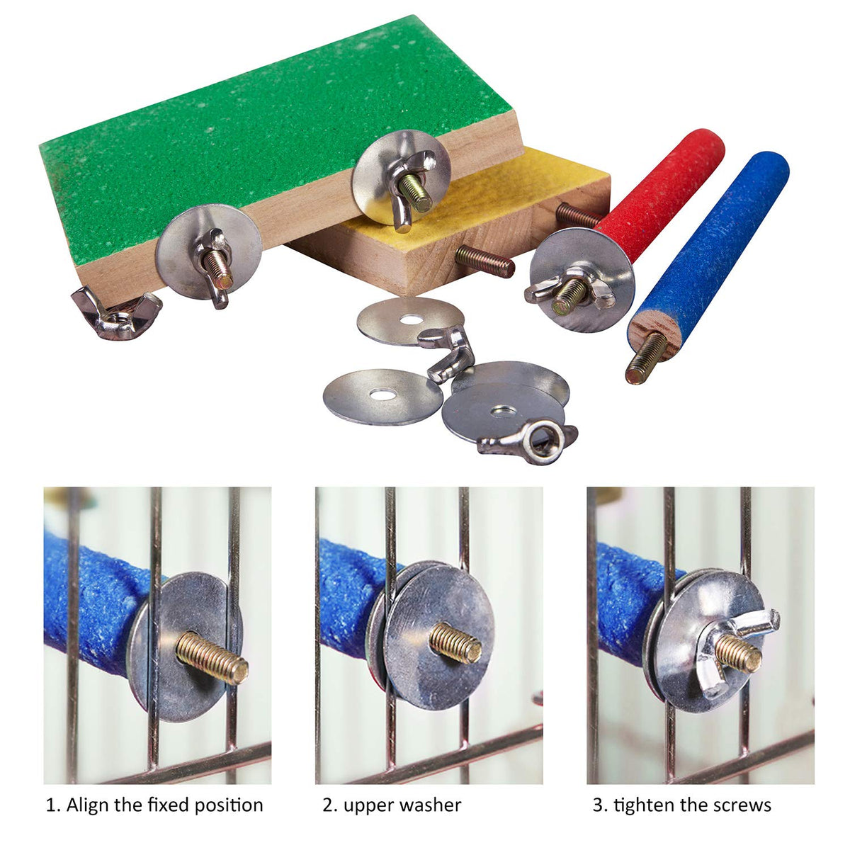 Q: How do I install the bird perch stand in my pet's cage?A: The bird perch stand features a metal screw on the top, making it easy to hang securely in your bird's cage, preventing it from falling during play.